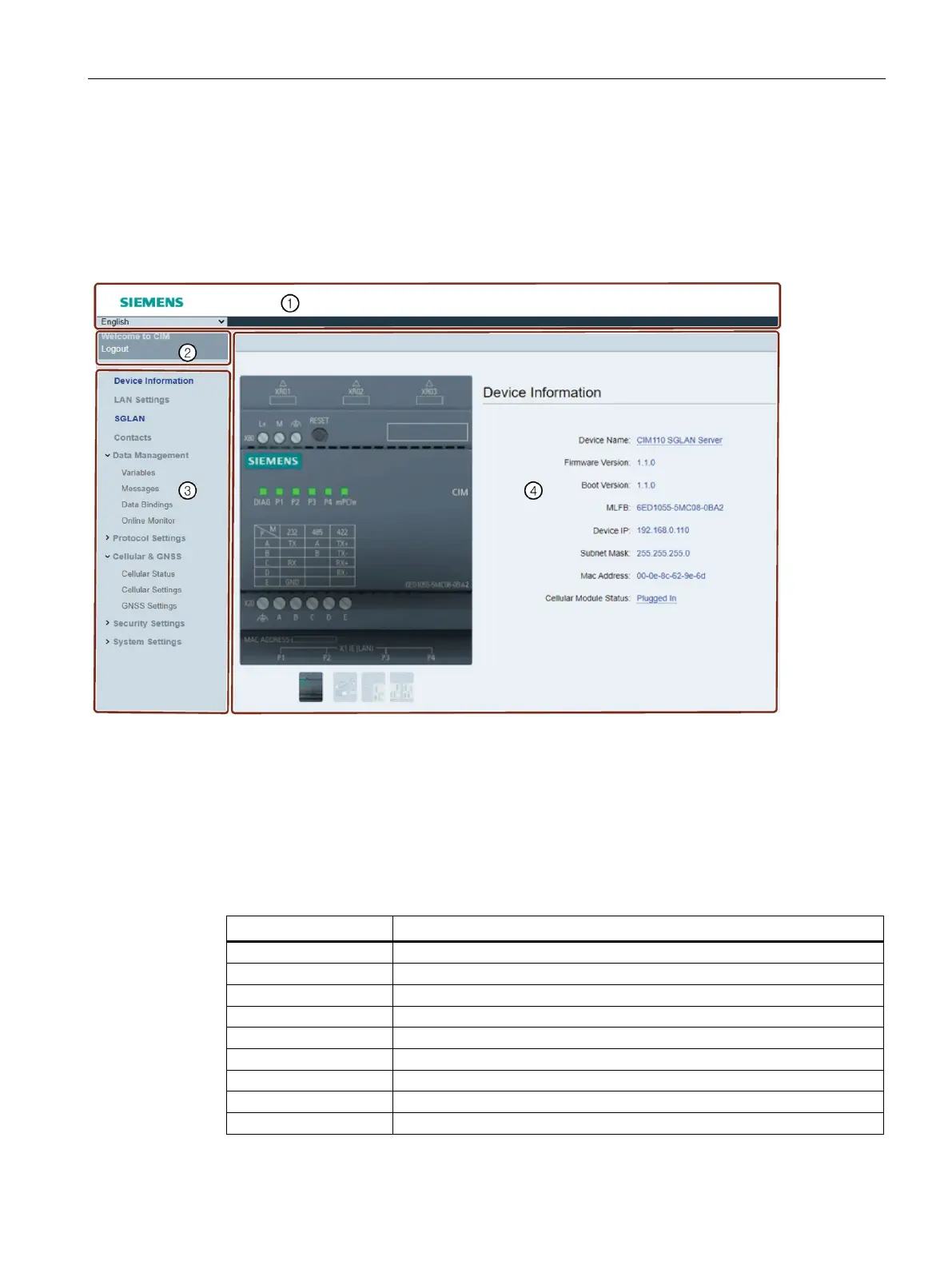The CIM includes following configuration pages: