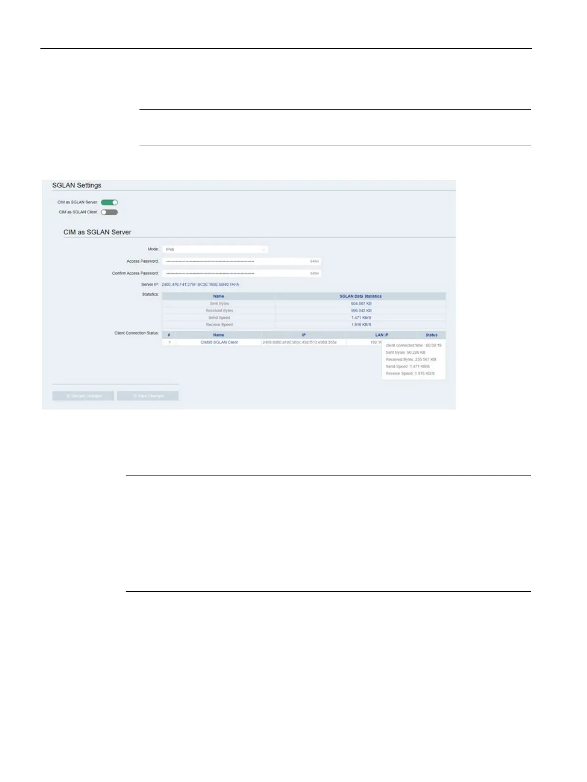 This page allows you to set the CIM work as SGLAN client.
