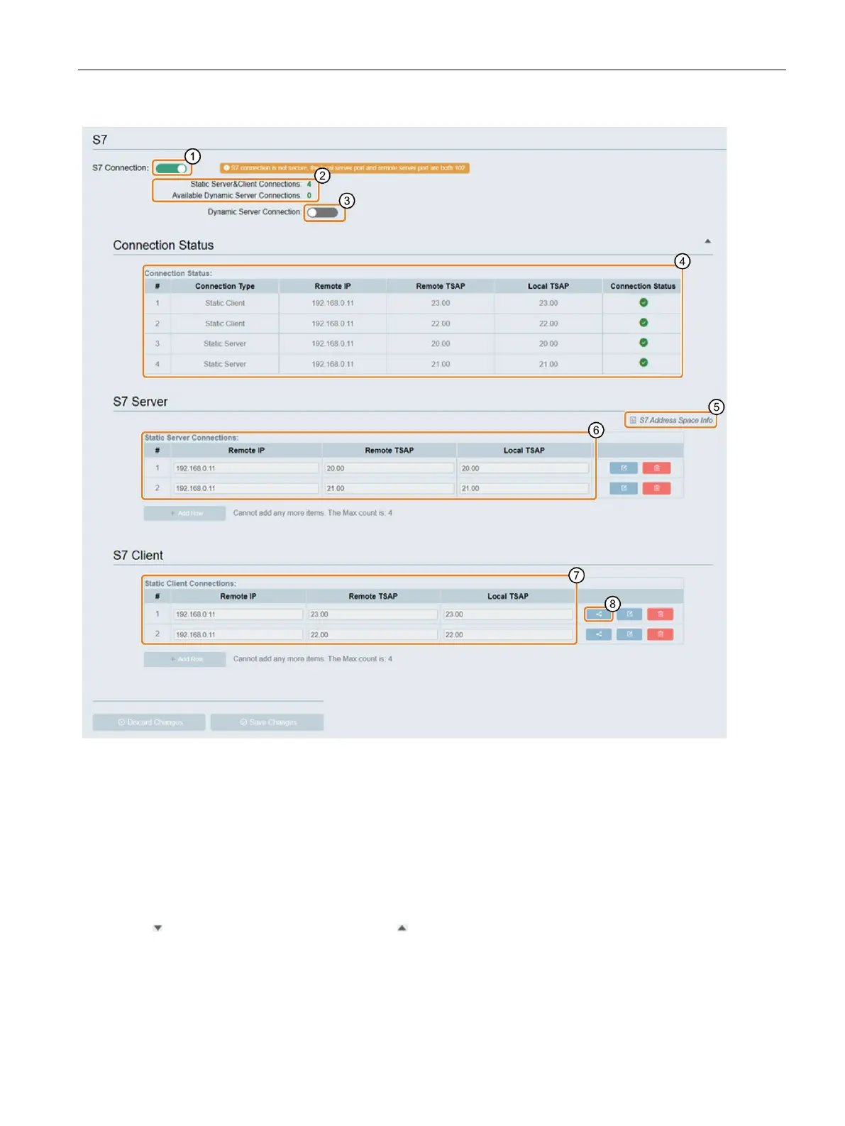 Note: CIM support maximumly four S7 connections simultaneously. If you have set some static connec-