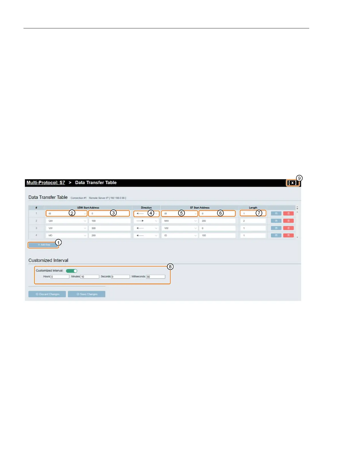 6. Input the S7 Start address of the remote S7 server ⑥.