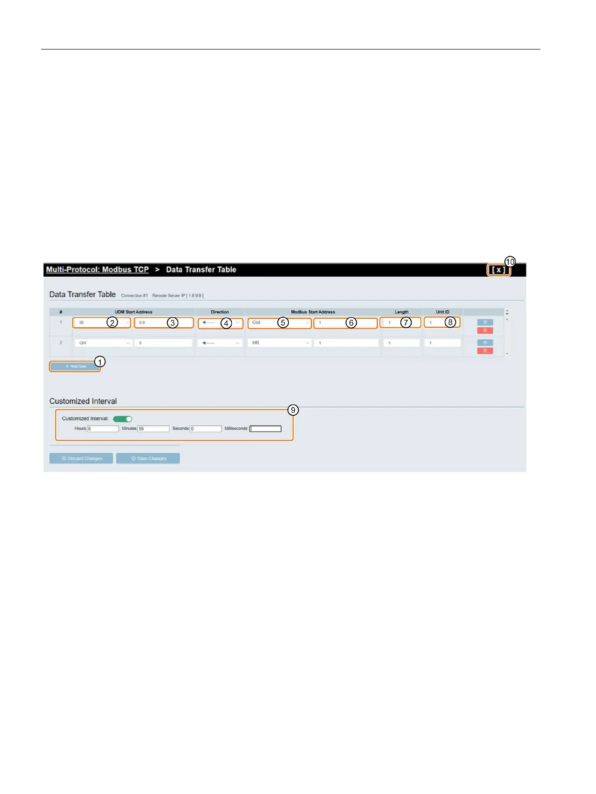 6. Input the Modbus start address of the remote Modbus TCP server ⑥.