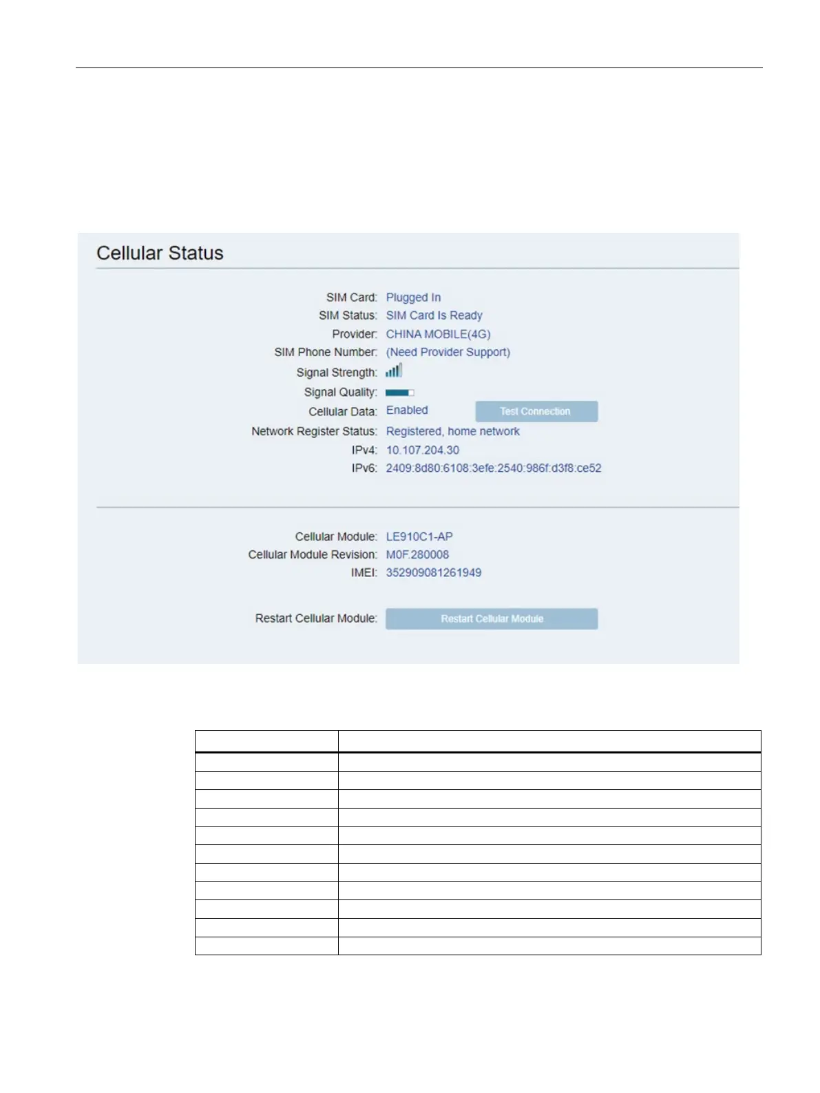 Siemens CIM - Cellular and GNSS; Cellular Status