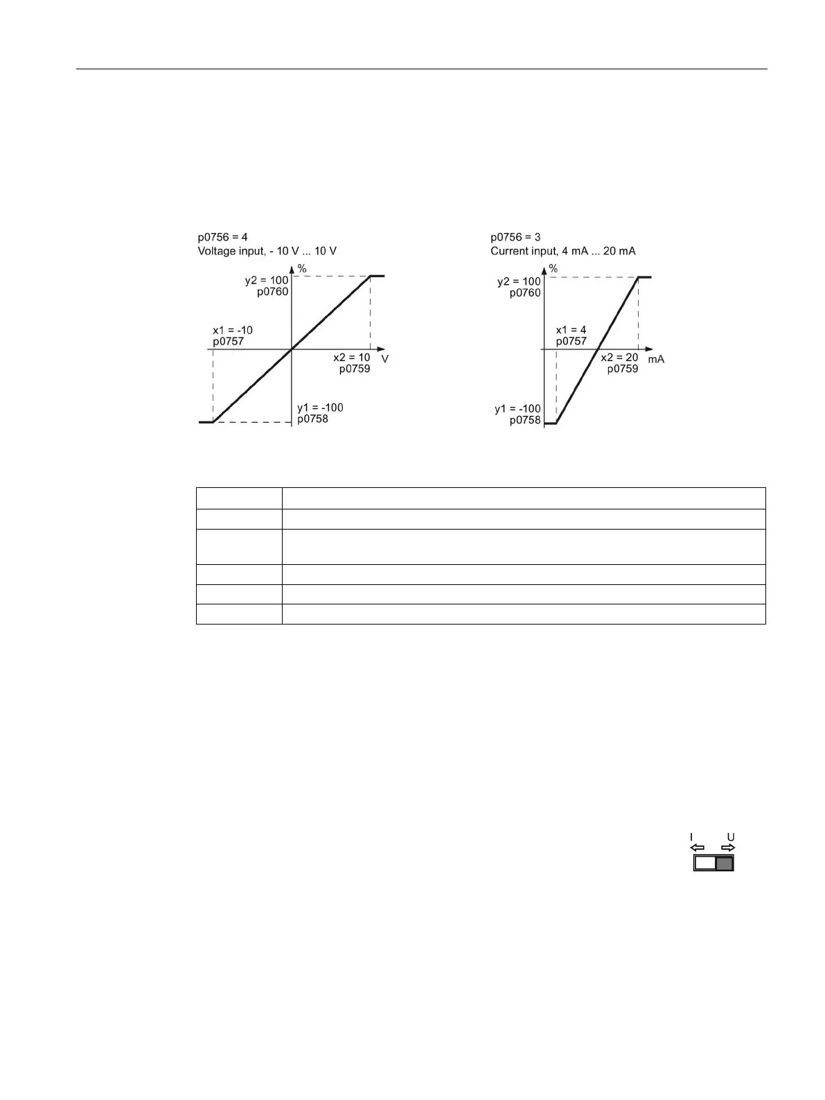 appropriate scaling of the analog input. The linear scaling characteristic is defined using two