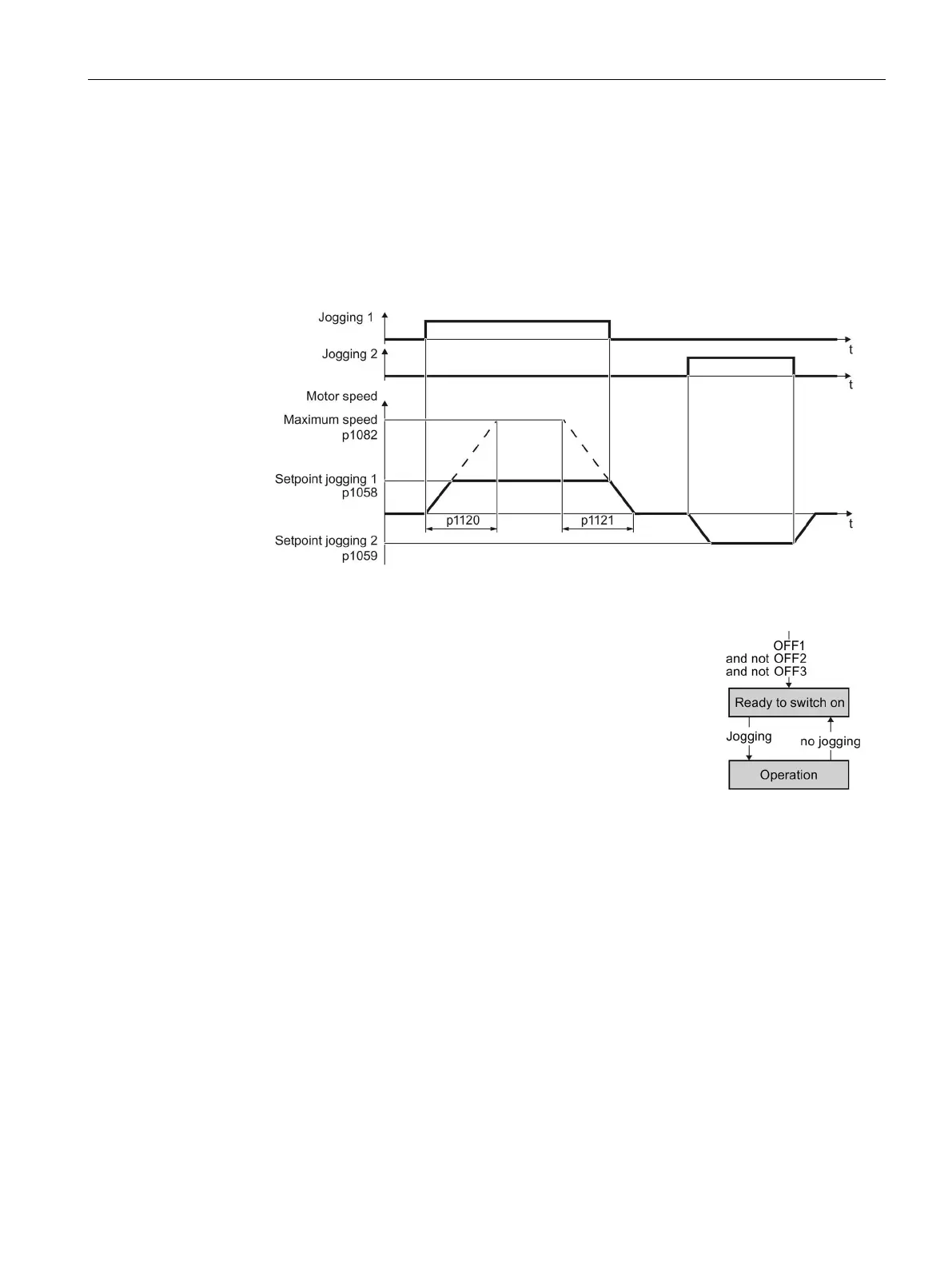 is switched on, it accelerates to the jogging setpoint. There are two different setpoints