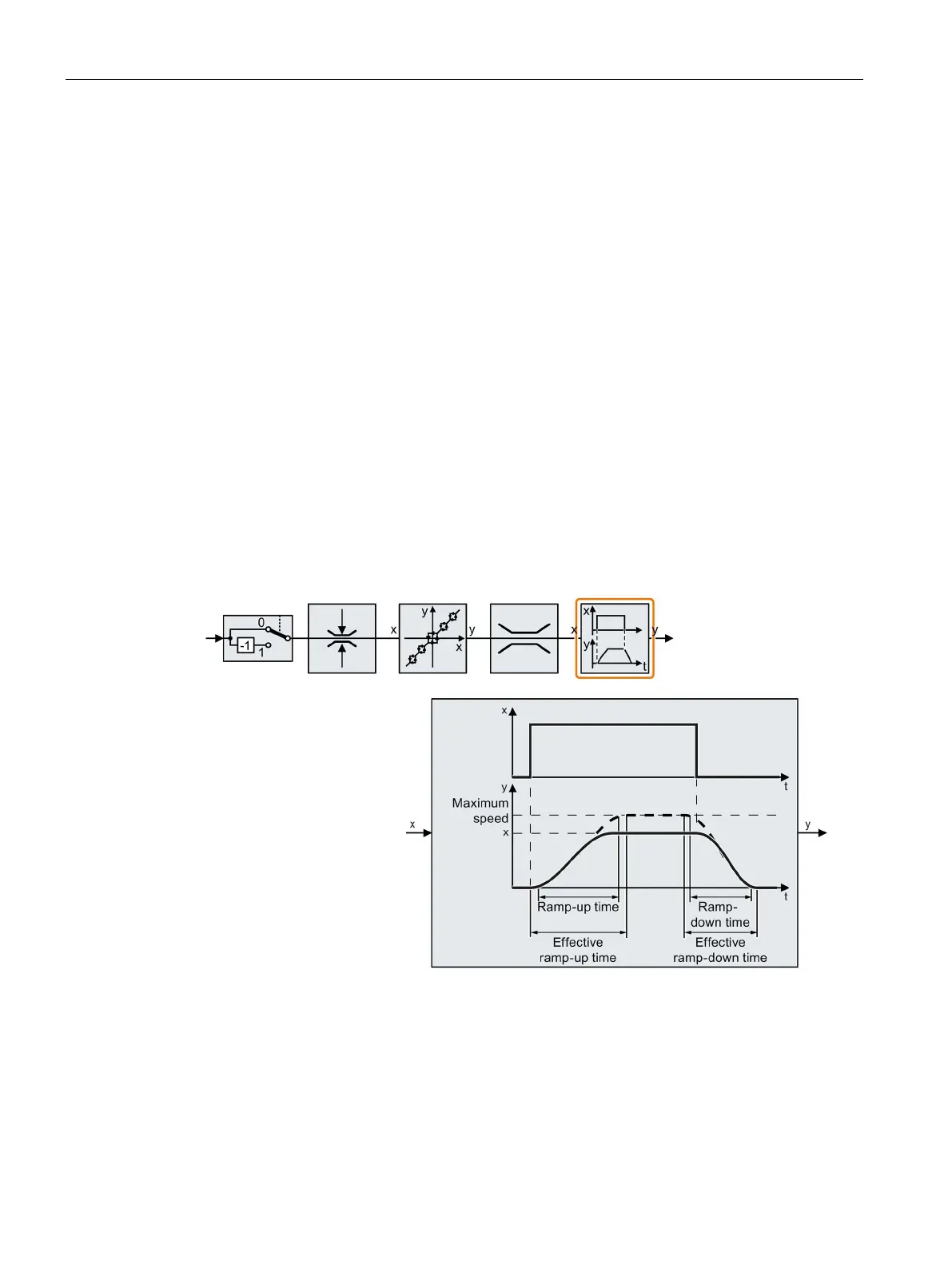 The ramp-function generator in the setpoint channel limits the rate of change of the speed
