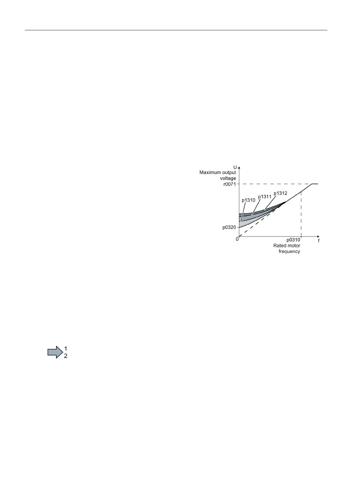 ● Increase the starting current in steps of ≤ 5 %. Excessively high values in p1310 ... p1312