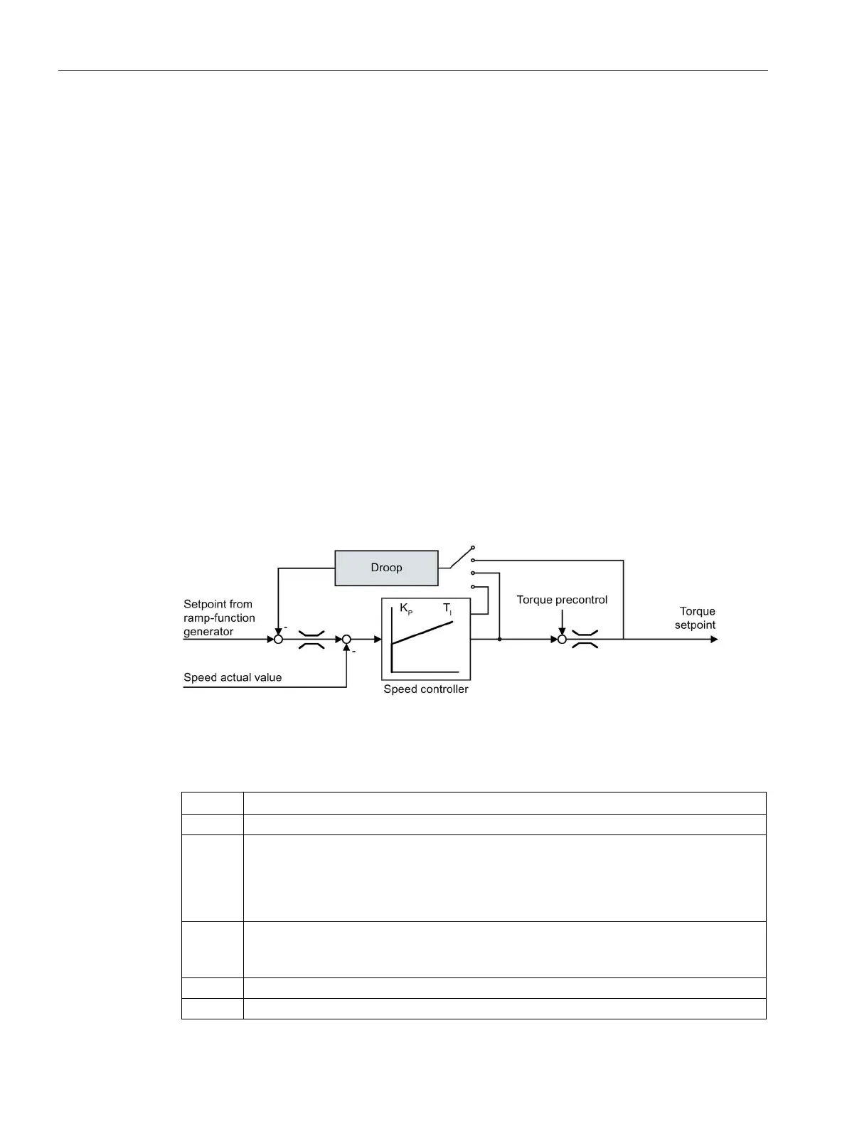 The droop function reduces the speed setpoint as a function of the torque setpoint.