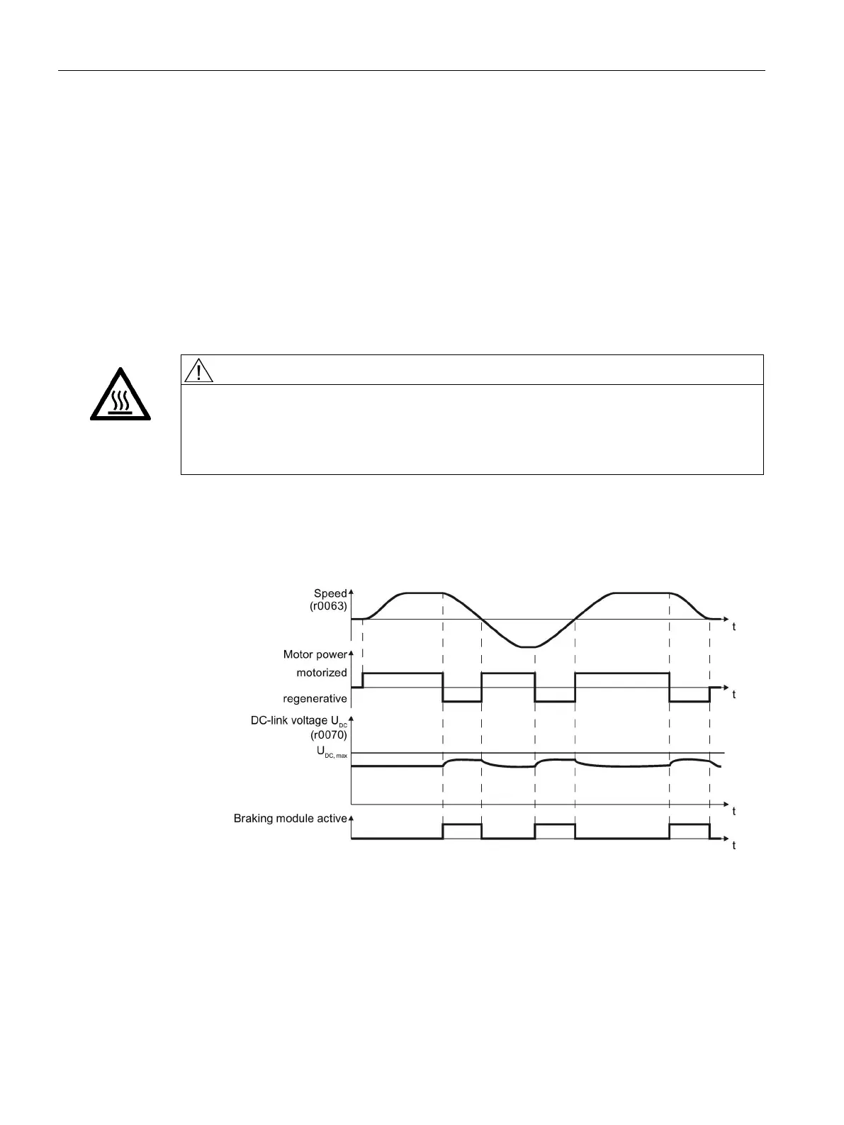 A braking resistor reaches high temperatures during operation. Touching the braking