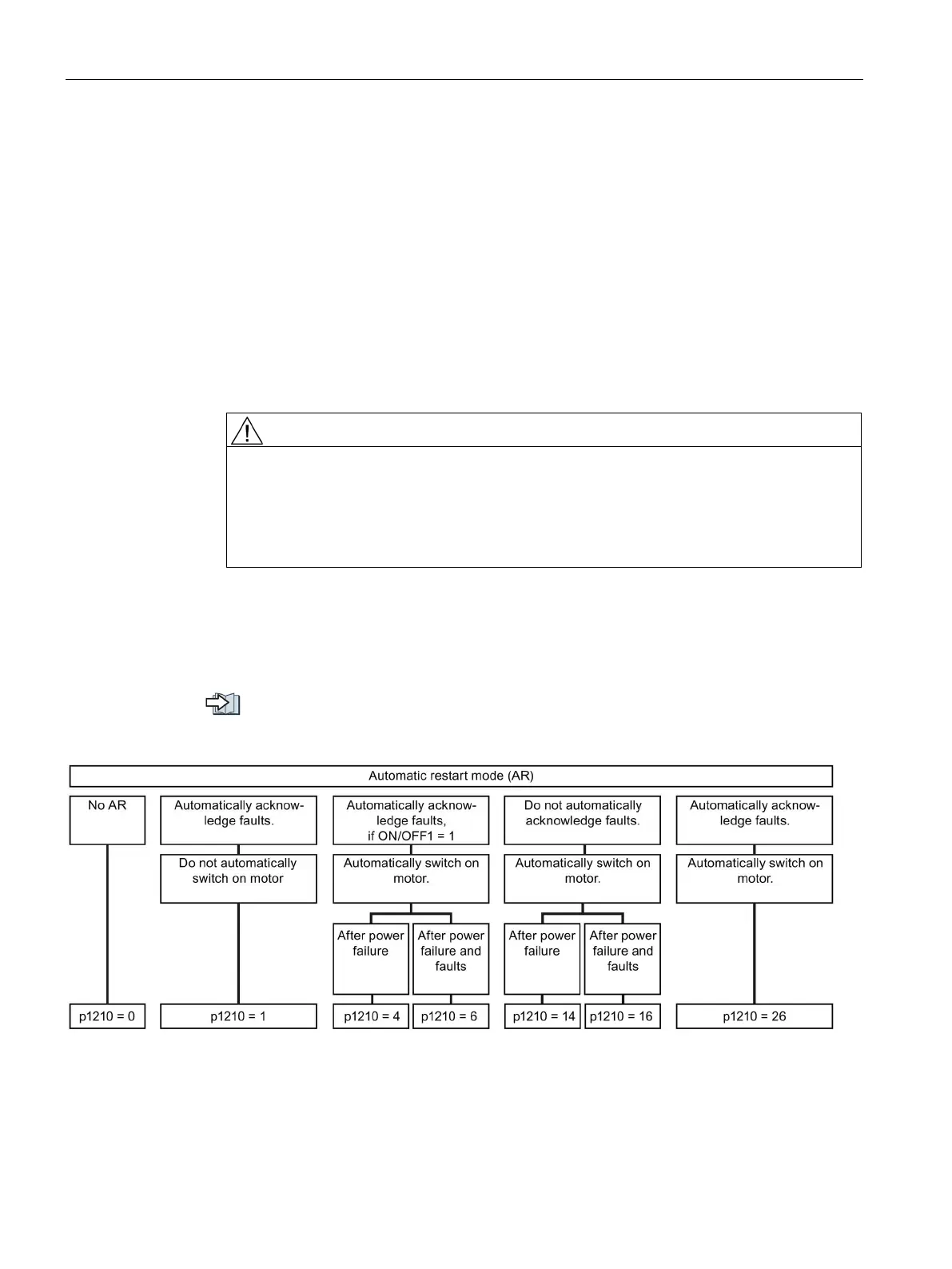 When the "automatic restart" function is active (p1210 > 1), the motor automatically