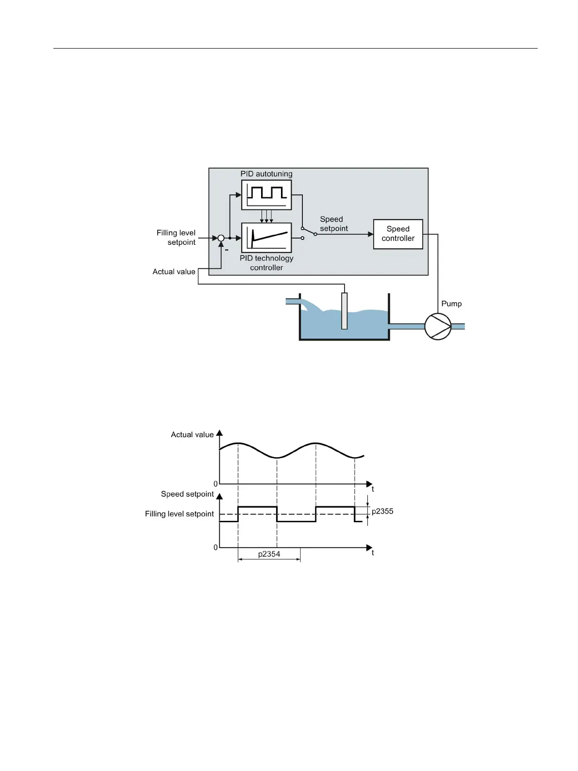signal with amplitude p2355. If actual value = technology setpoint ± p2355, the autotuning