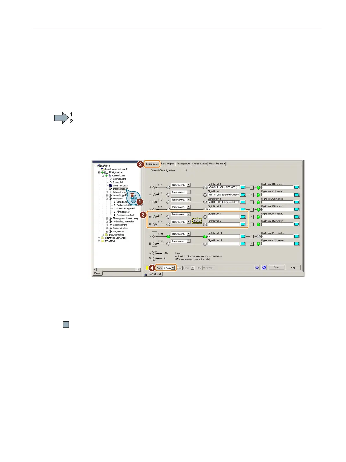 If you control the safety functions in the inverter using digital inputs, you must check whether