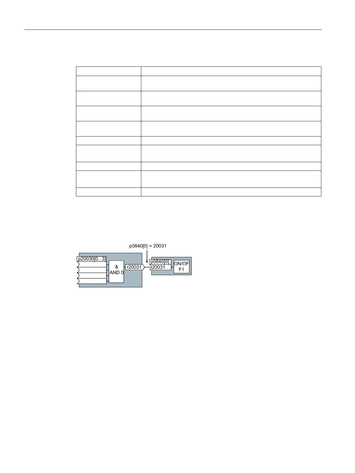 Parameter p0840[0] is the input of the "ON/OFF1" block of the inverter. Parameter r20031 is