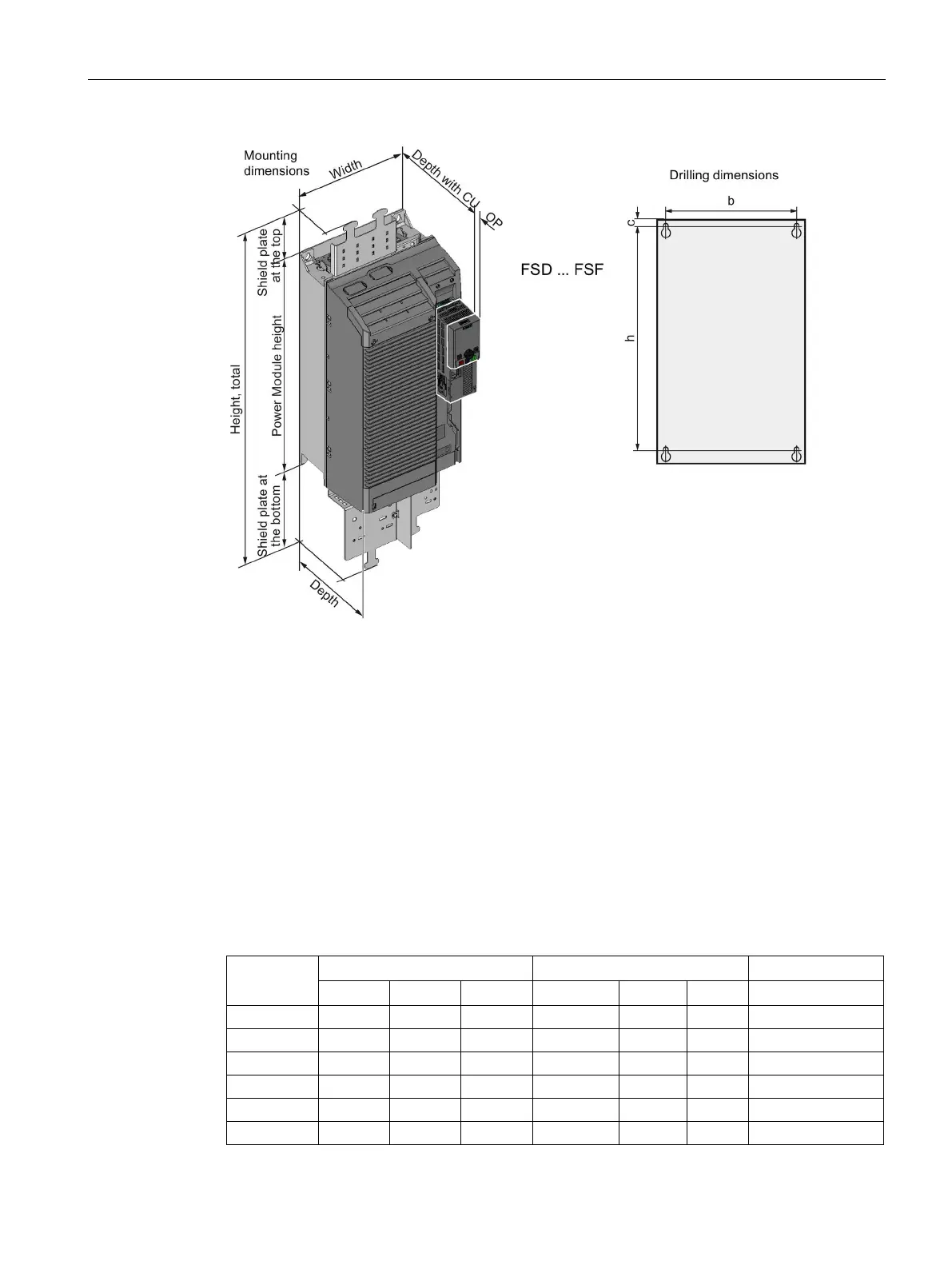 Table 4- 2 Drilling dimensions, cooling clearances and fixing