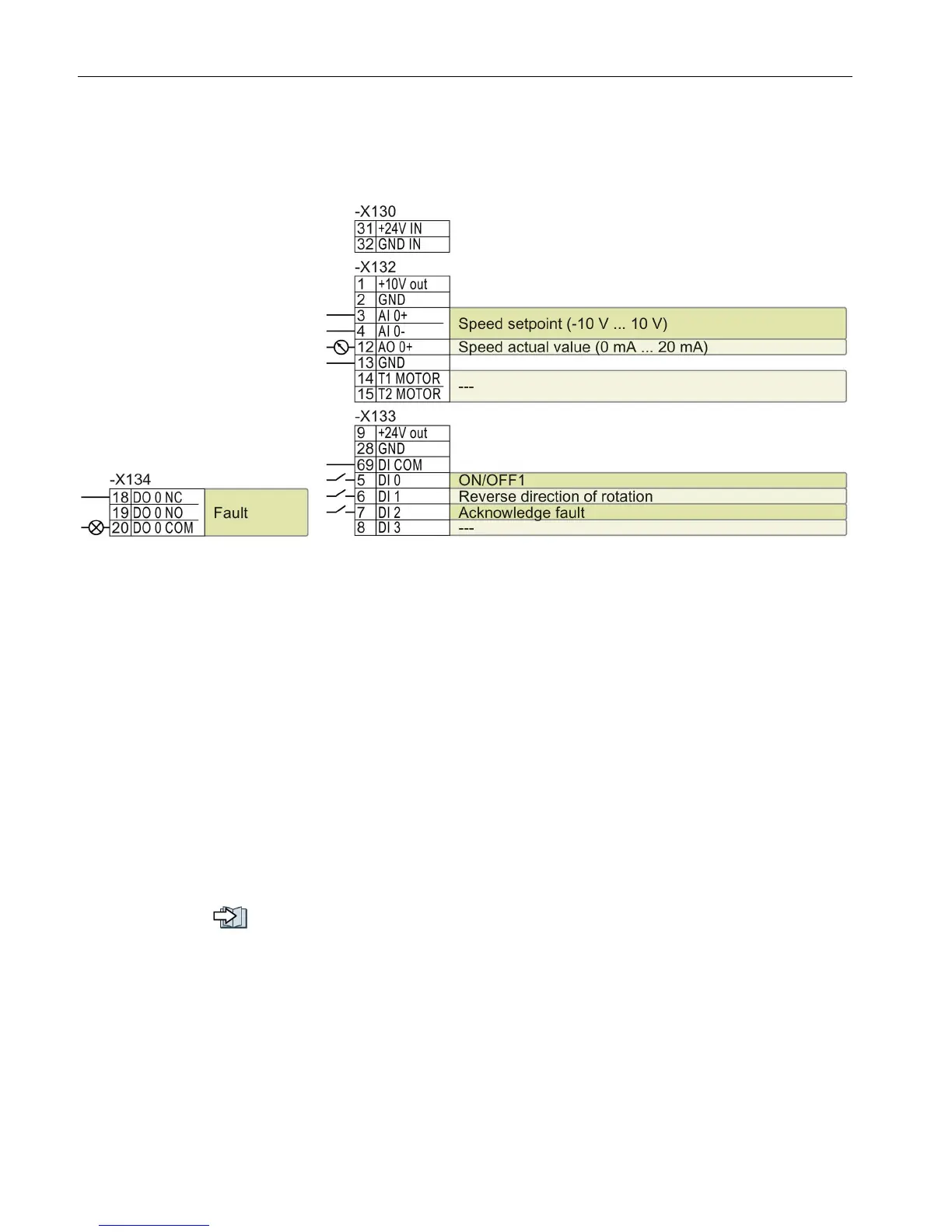● Default setting 12 (p0015 = 12): "Standard I/O with analog setpoint"