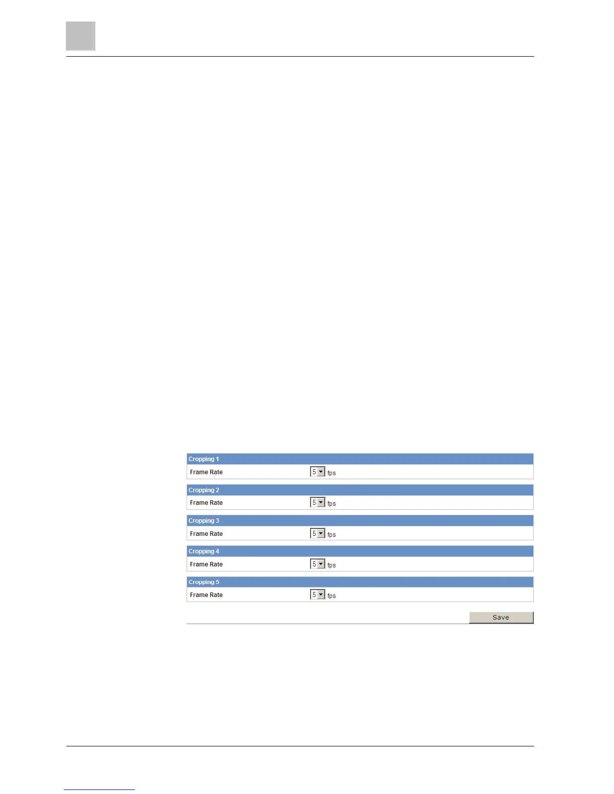 The frame rate value for each cropping can be set between 1 and 5 fps.