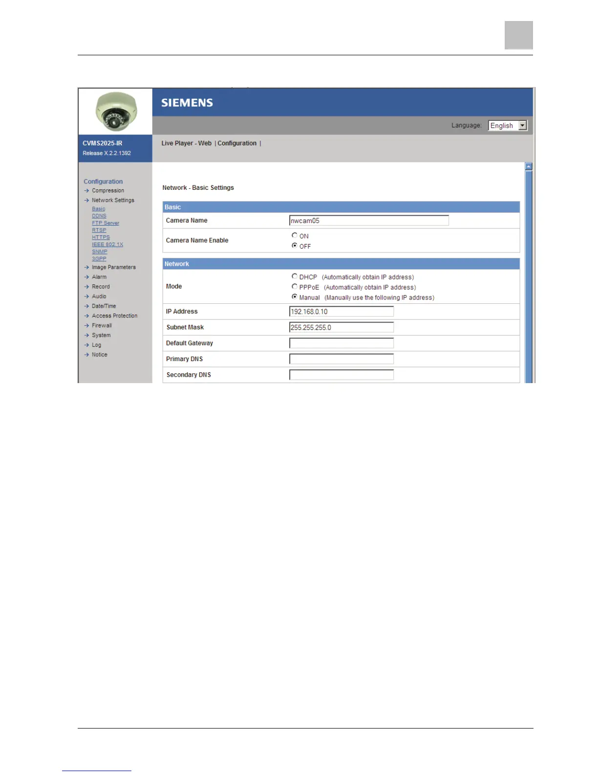 Camera Name Enable: Select "ON" to enable this function or "OFF" to disable it.
