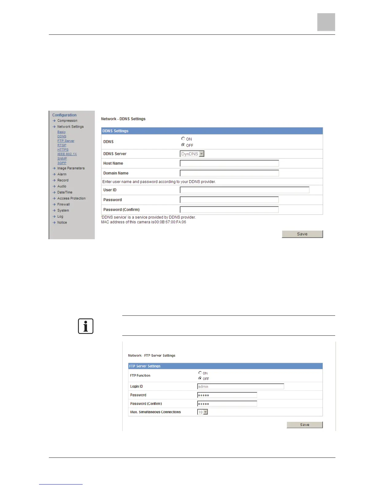 1. Select "ON" to activate the FTP function. Enter your login ID and password and