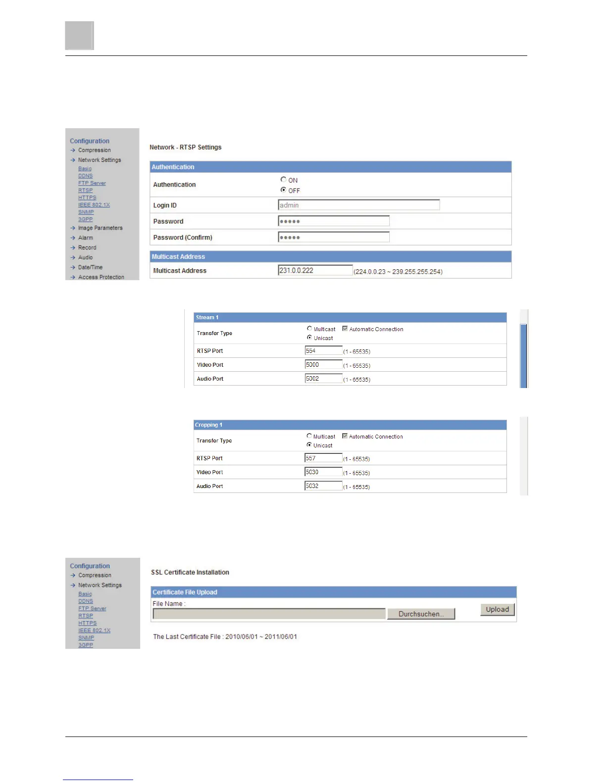 Cropping 1-5: Select the transfer type and enter the RTSP port, video port and