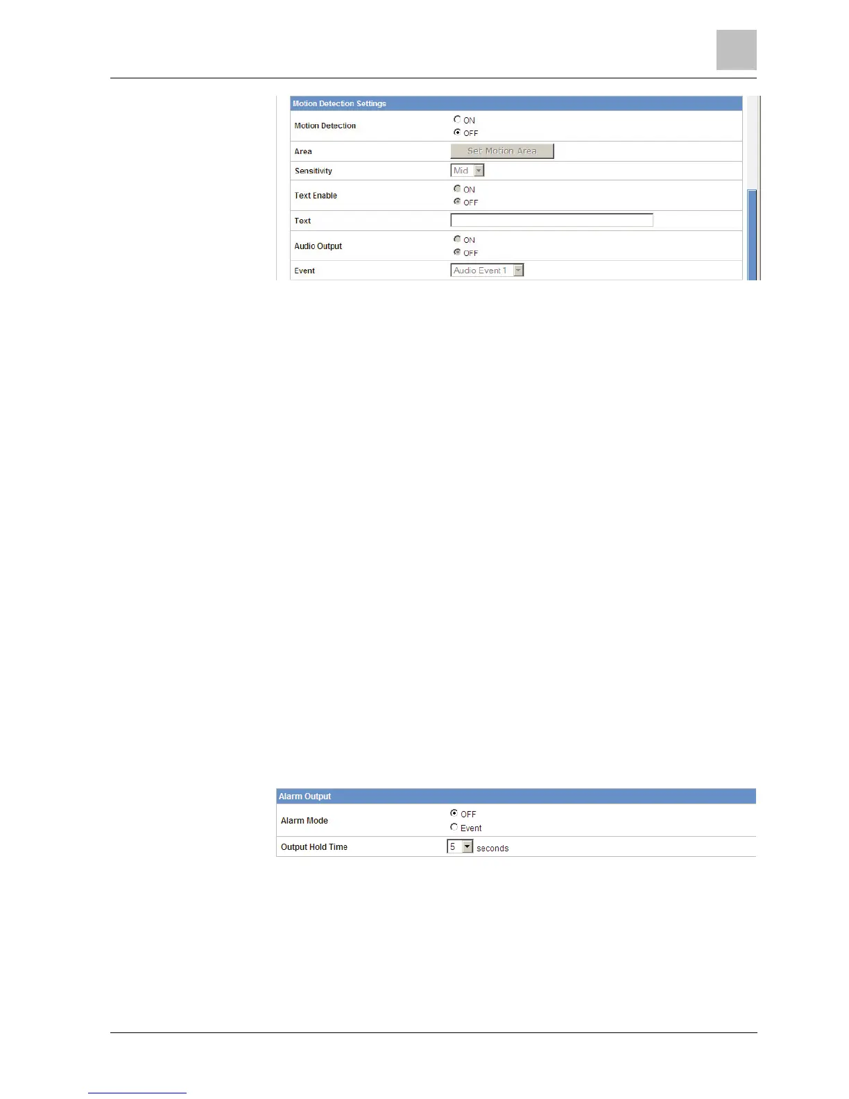 Motion detection settings