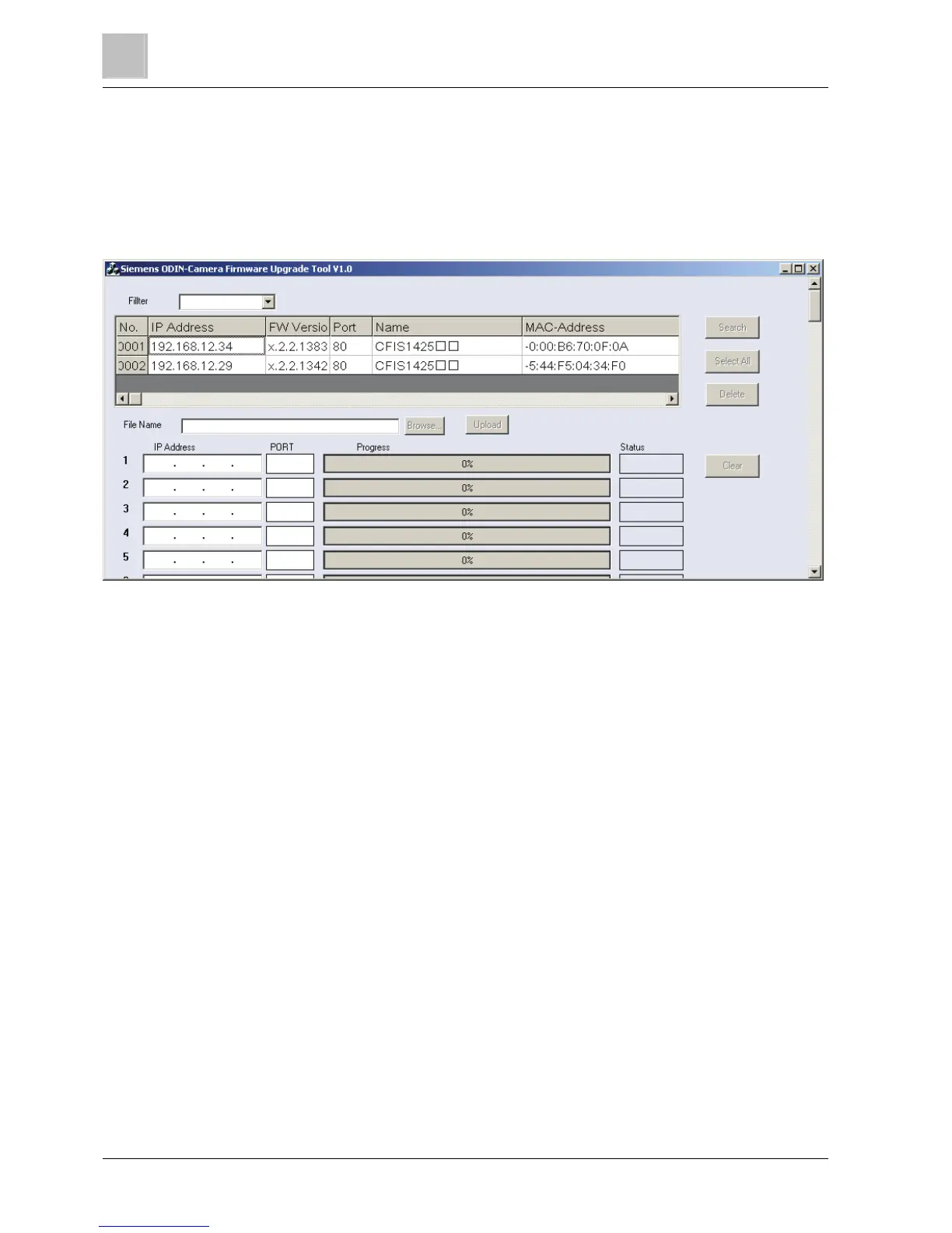 2. Select the network camera you want to update. The upgrade tool supports the