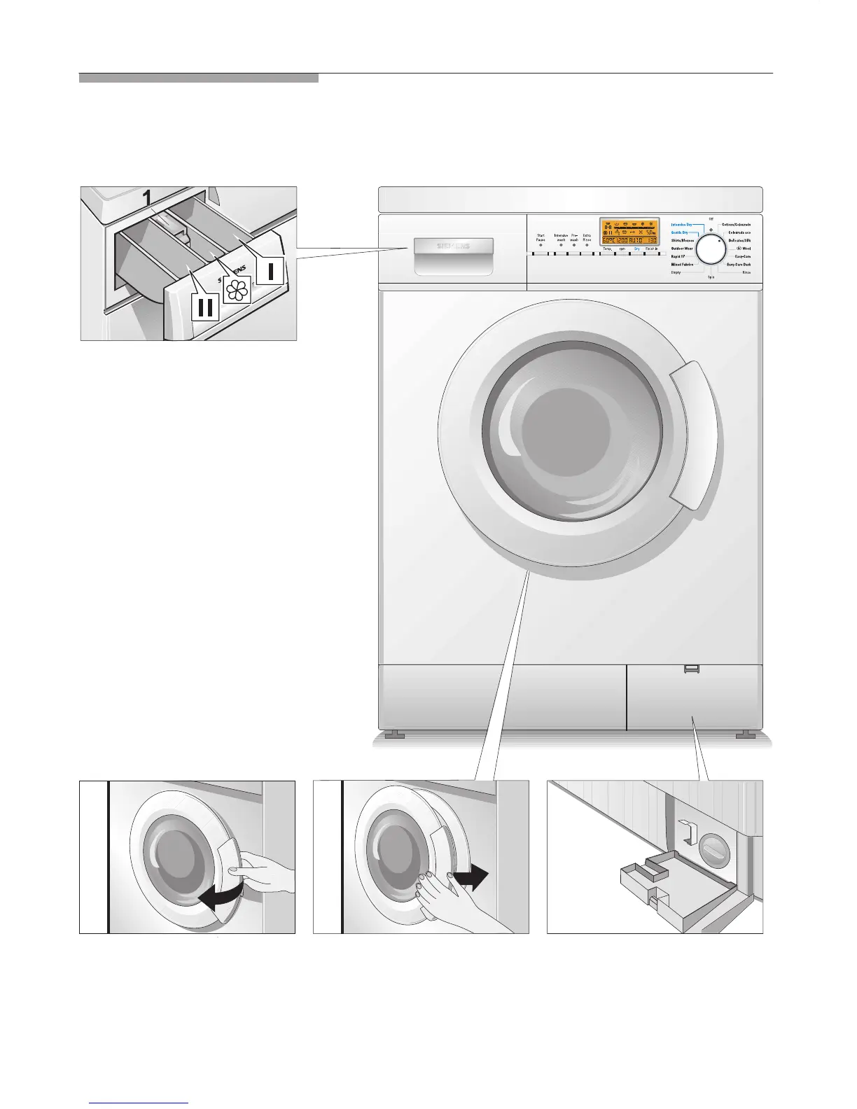 Siemens D12-52 - Introducing Your Washer-Dryer; Detergent and Cleaning Product Dispenser; Opening and Closing the Door; Service Flap Location