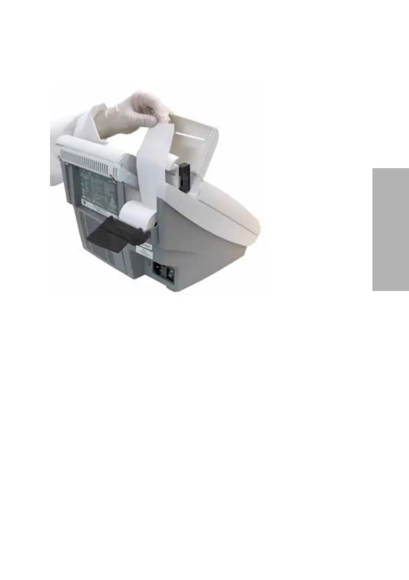 10. Hold the roll just above the printer, with the paper unrolling from