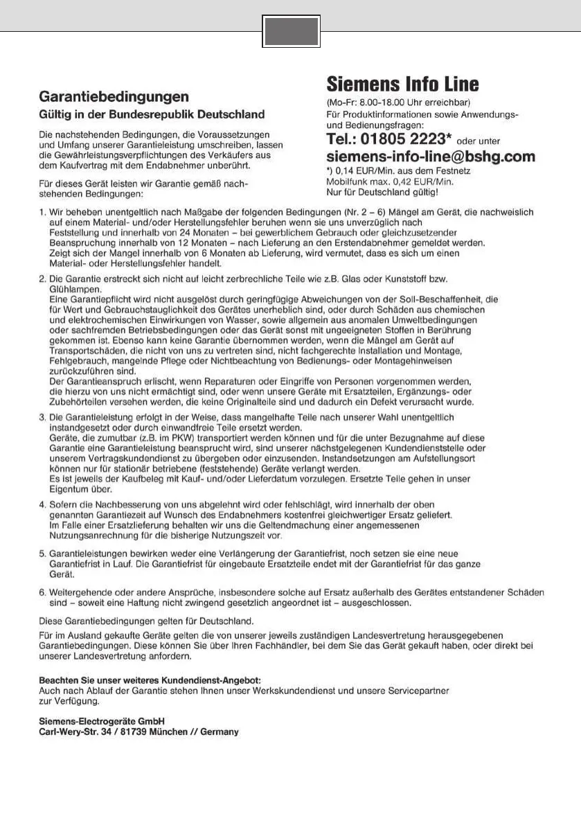 Siemens DE06111 - Warranty Conditions