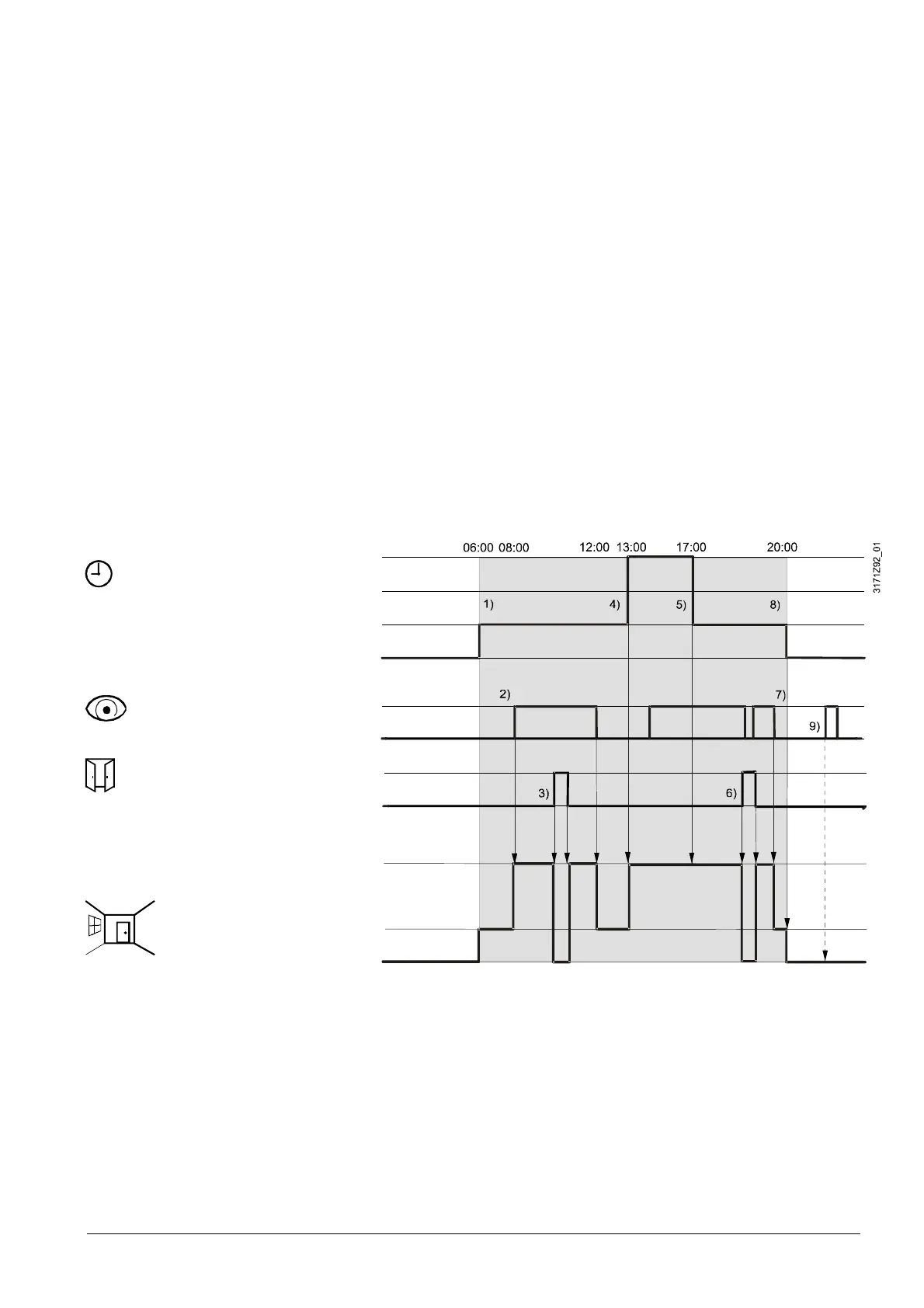 · At 20:00 the room is set to protection according to time schedule. (8)