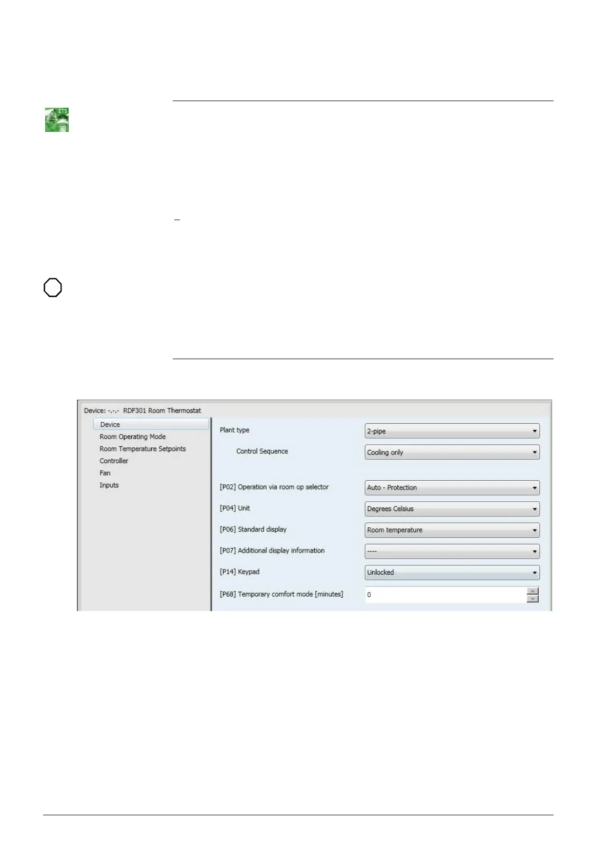 – Download the switching group parameters (RDF301.50, RDF600KN/S)