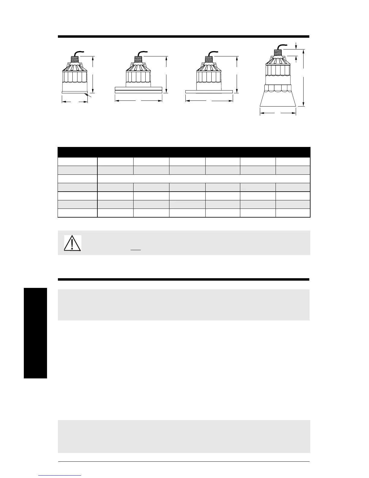 • Monteer de transducer zodanig dat deze zich tenminste met de blanking afstand boven