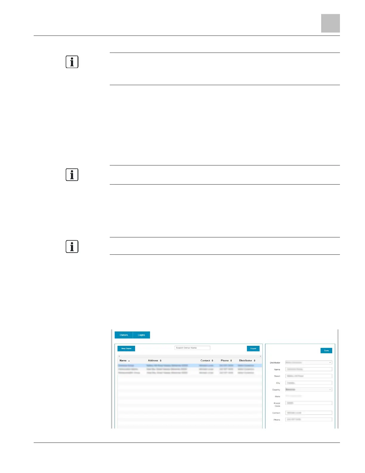 Owners and Logins, edit existing accounts [} 24], and unlock accounts [} 25] that are