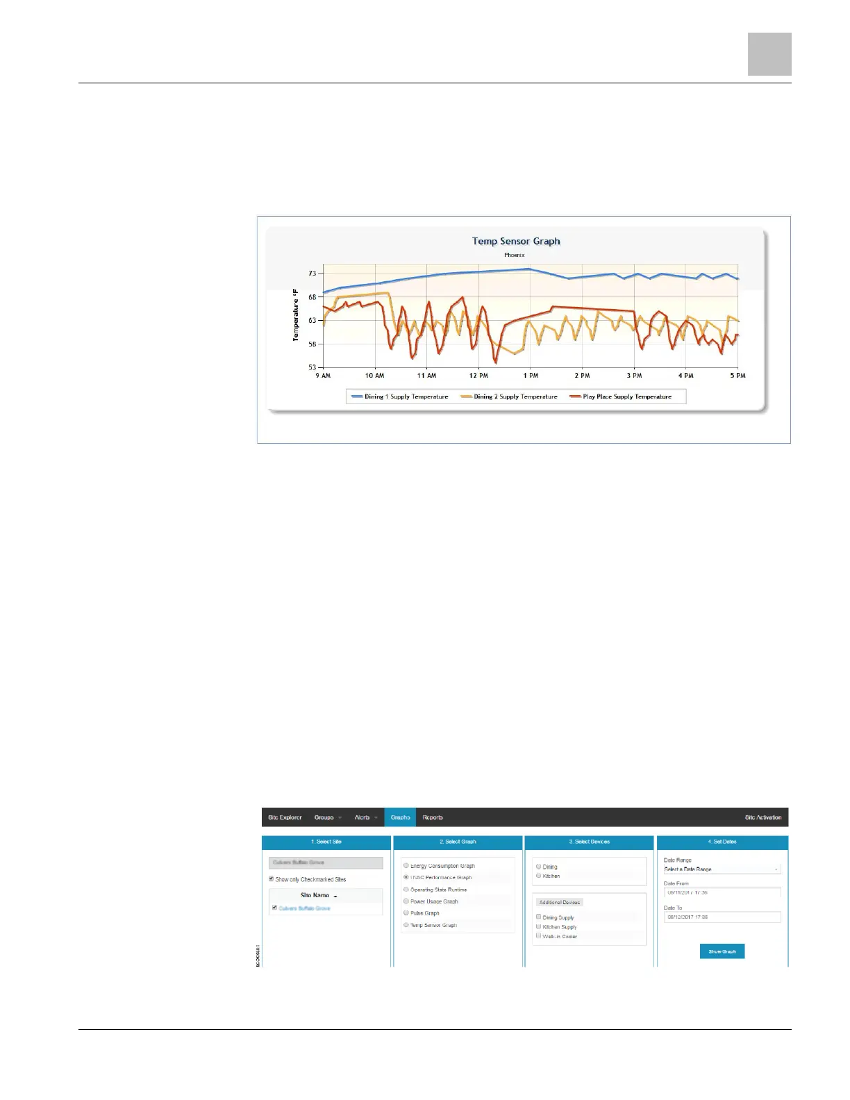 The Temp Sensor graph summarizes the auxiliary temperature readings for one site