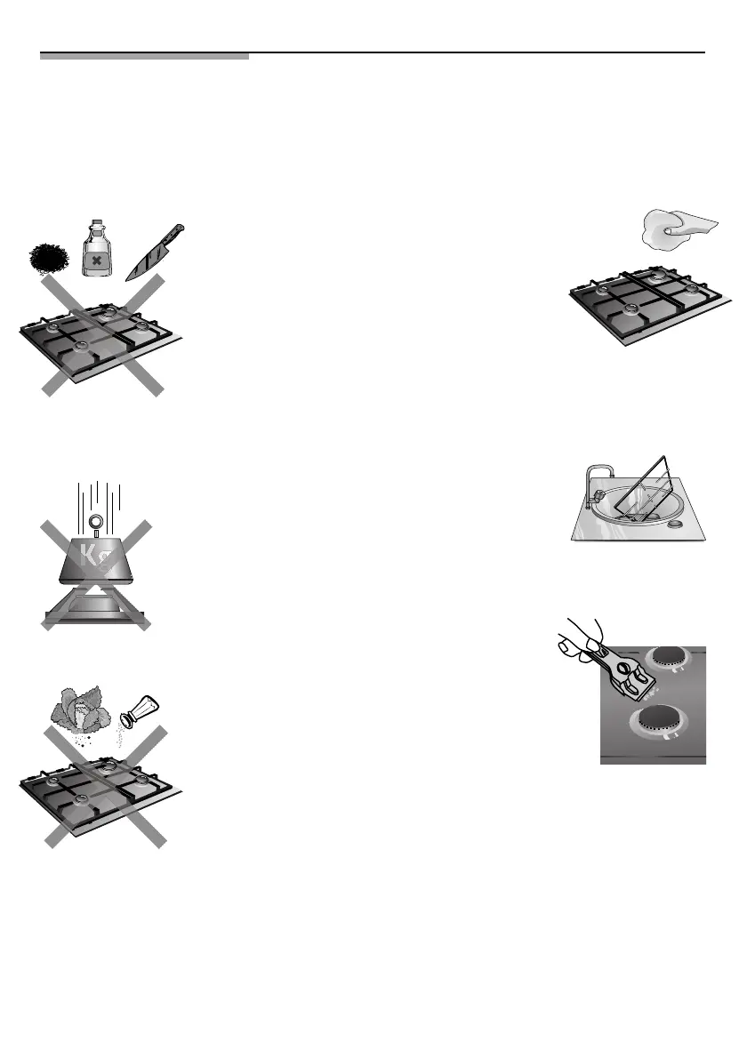 et rayer la plaque en verre ou le profilé avec la grille lors de son utilisation suivante.