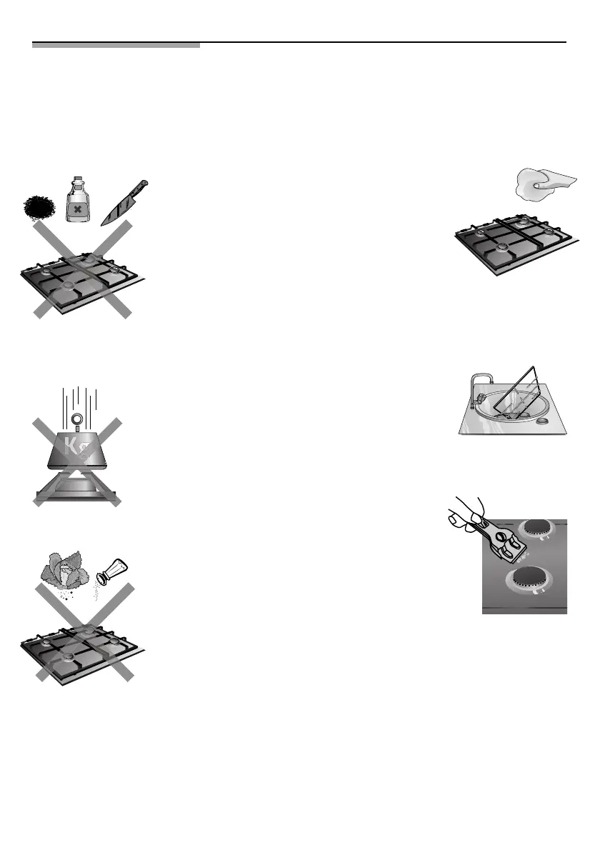 e graffiare il vetro o il profilo con la griglia durante la sua utilizzazione successiva.