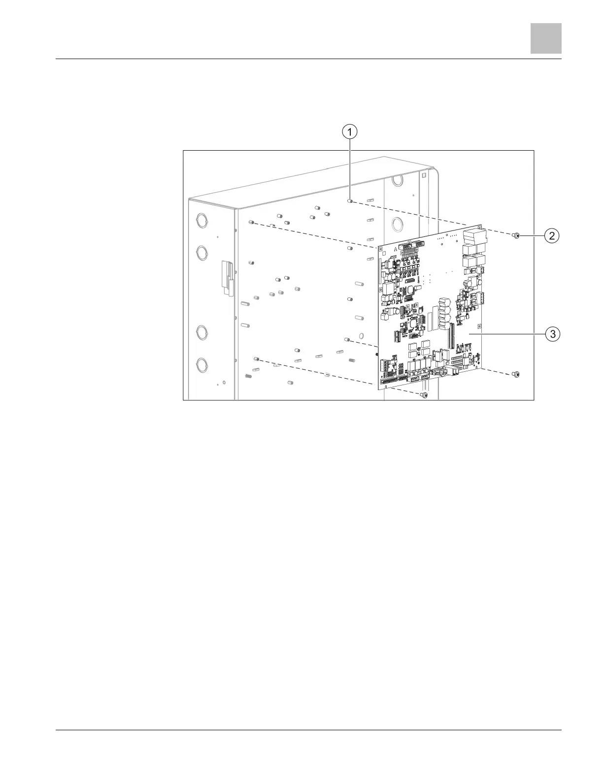 1. Install the periphery board (500p) (3) on the threaded sleeves (1) of the back box