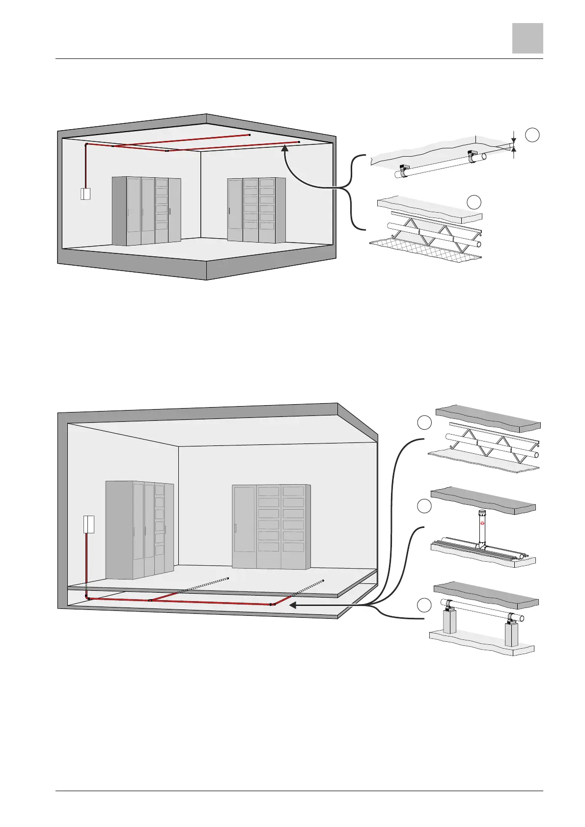 The air in the false floor or the duct is usually aspirated through a pipe system.
