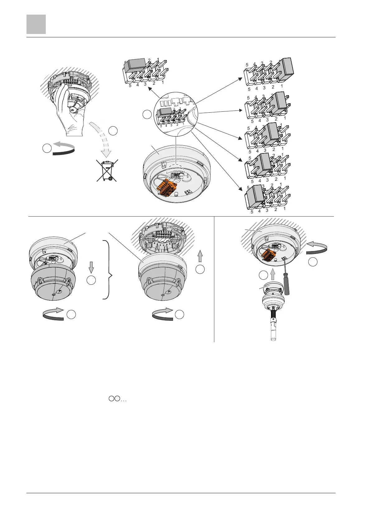 Removal and disposal of existing detector and jumper position on base adapter for existing