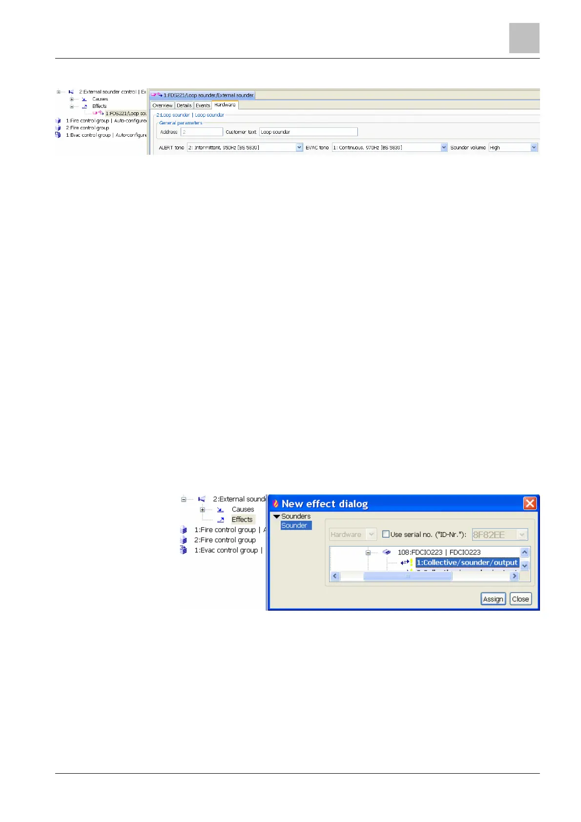 – 'Evac control group' > 'Universal sounder evac control' or 'Phased sounder