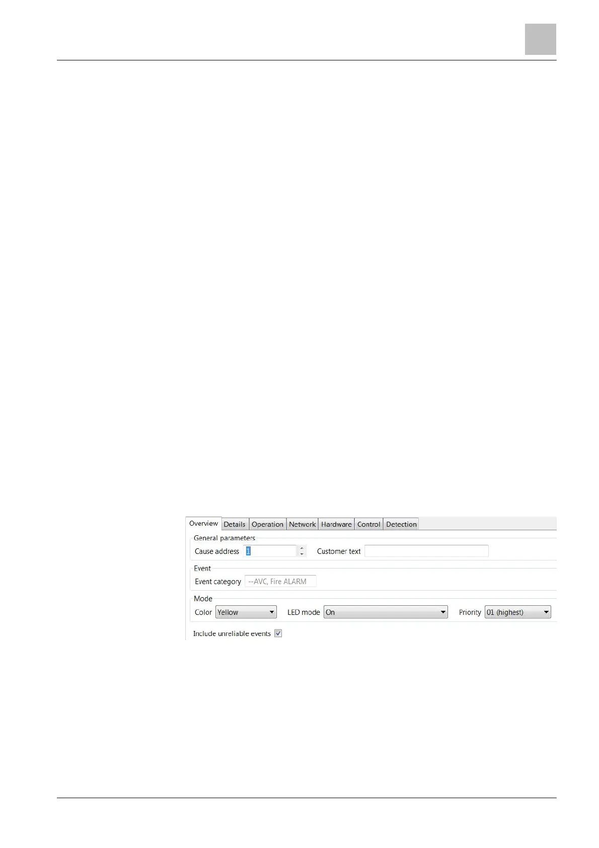 ● 'Event filter': Event that activates the cause and thus the LED. All events within