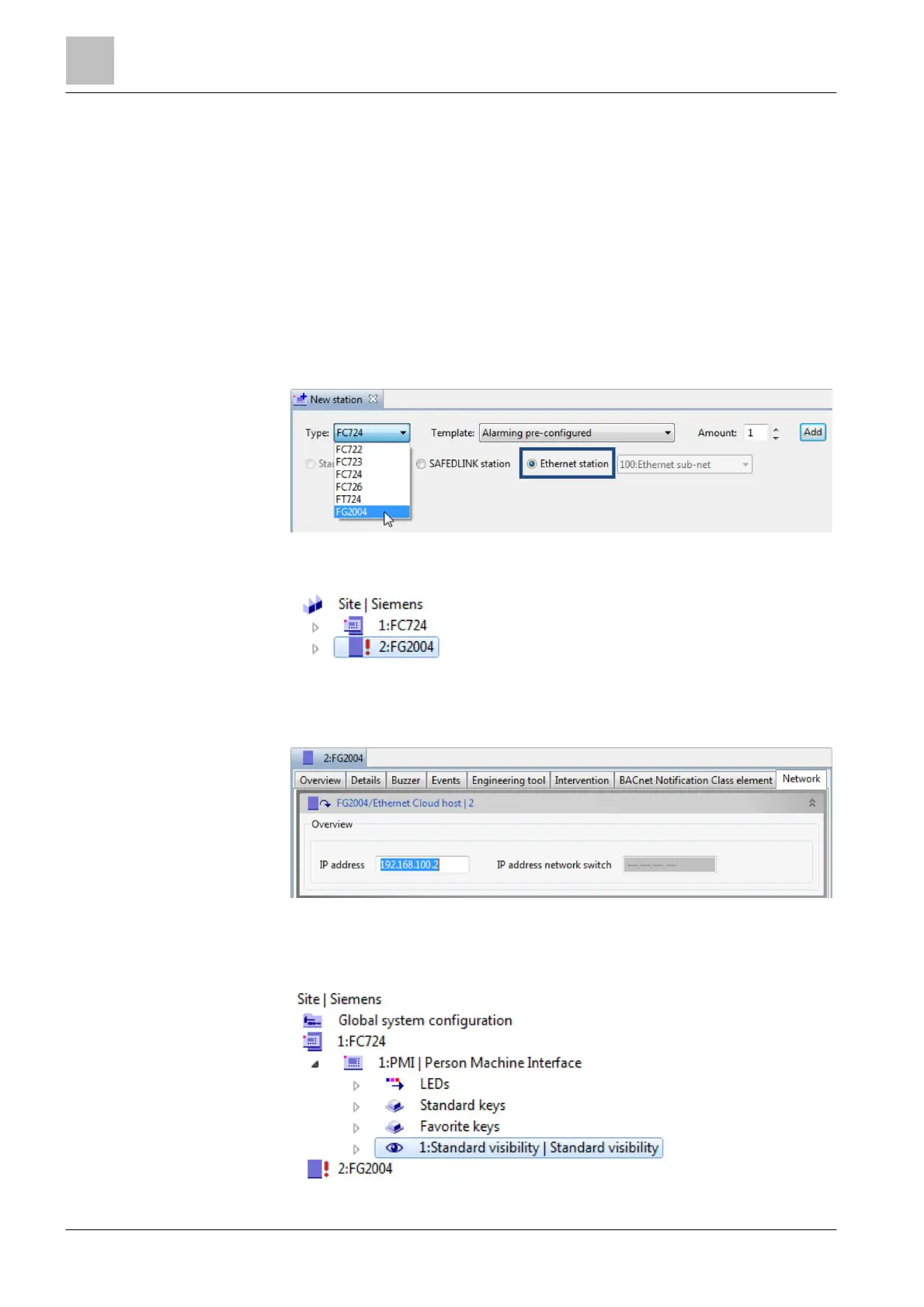 1. Create an 'Ethernet station' of type 'FG2004' in the 'Hardware' task card.