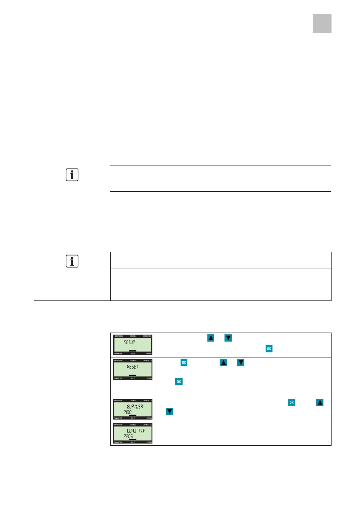 Set the regional settings for the motor, e.g. kW and Hz. Press and then