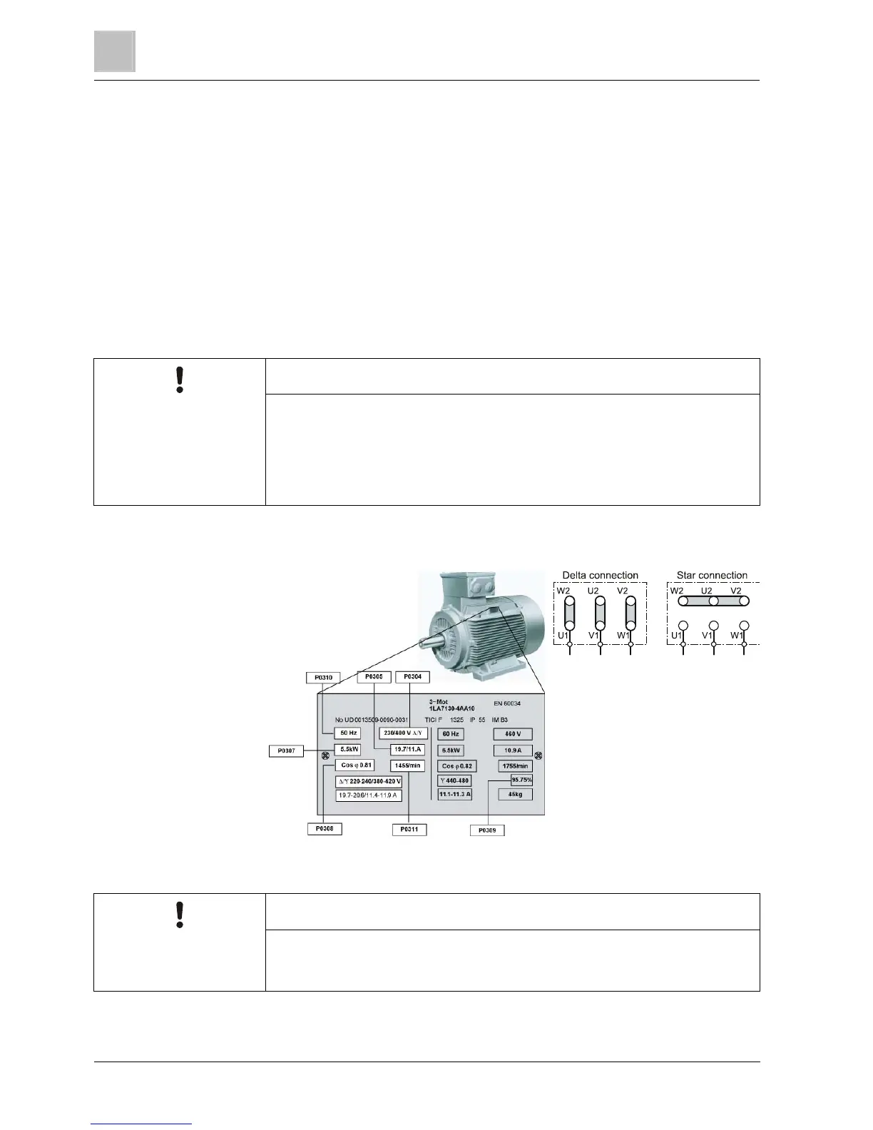 The entry of the rating plate data must match the interconnection of the motor