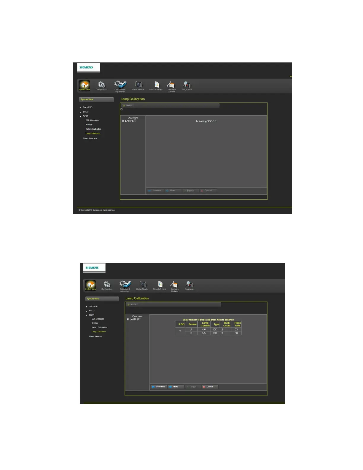 Figure 3-113 Lamp Calibration – Activating SSCC 1