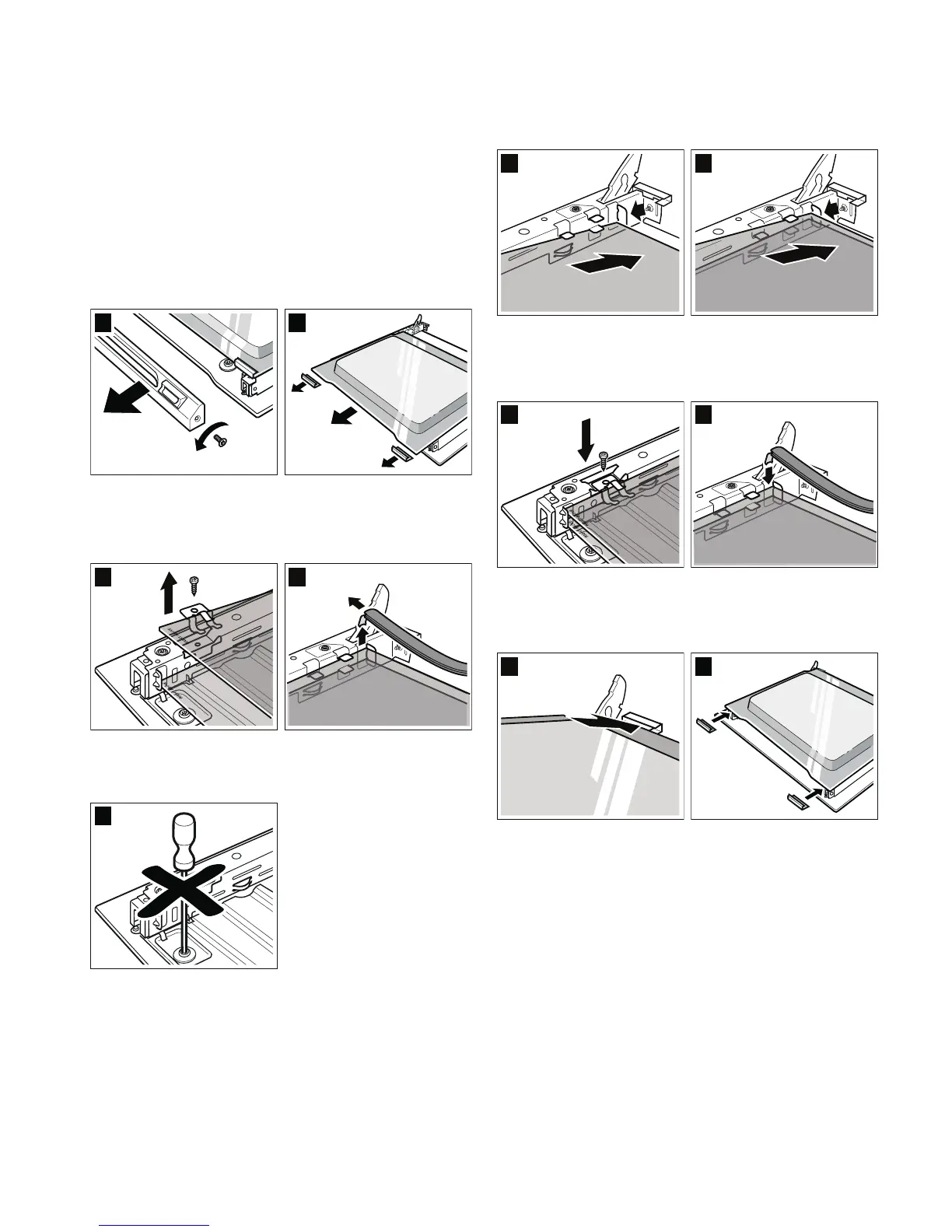 4. Unscrew the retaining clips on the right and left. Lift the panel
