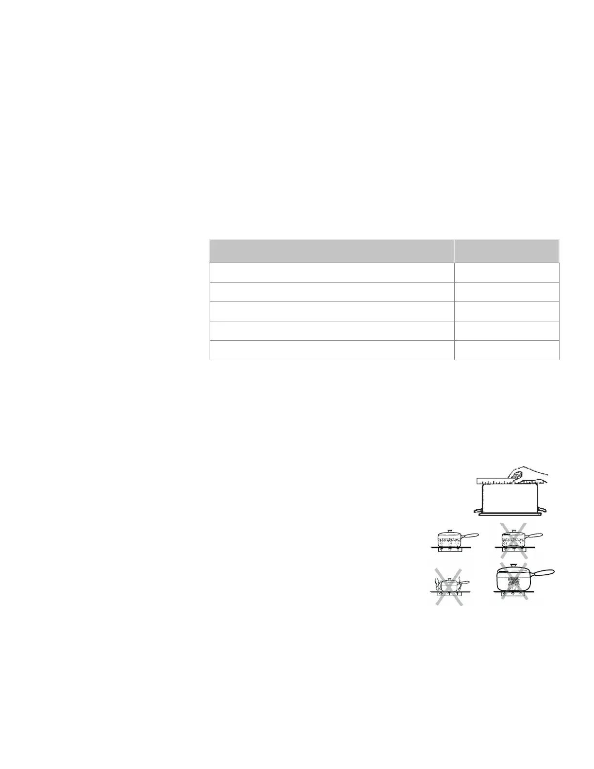 • Make sure the bottom of the pot or pan being used is clean and dry.