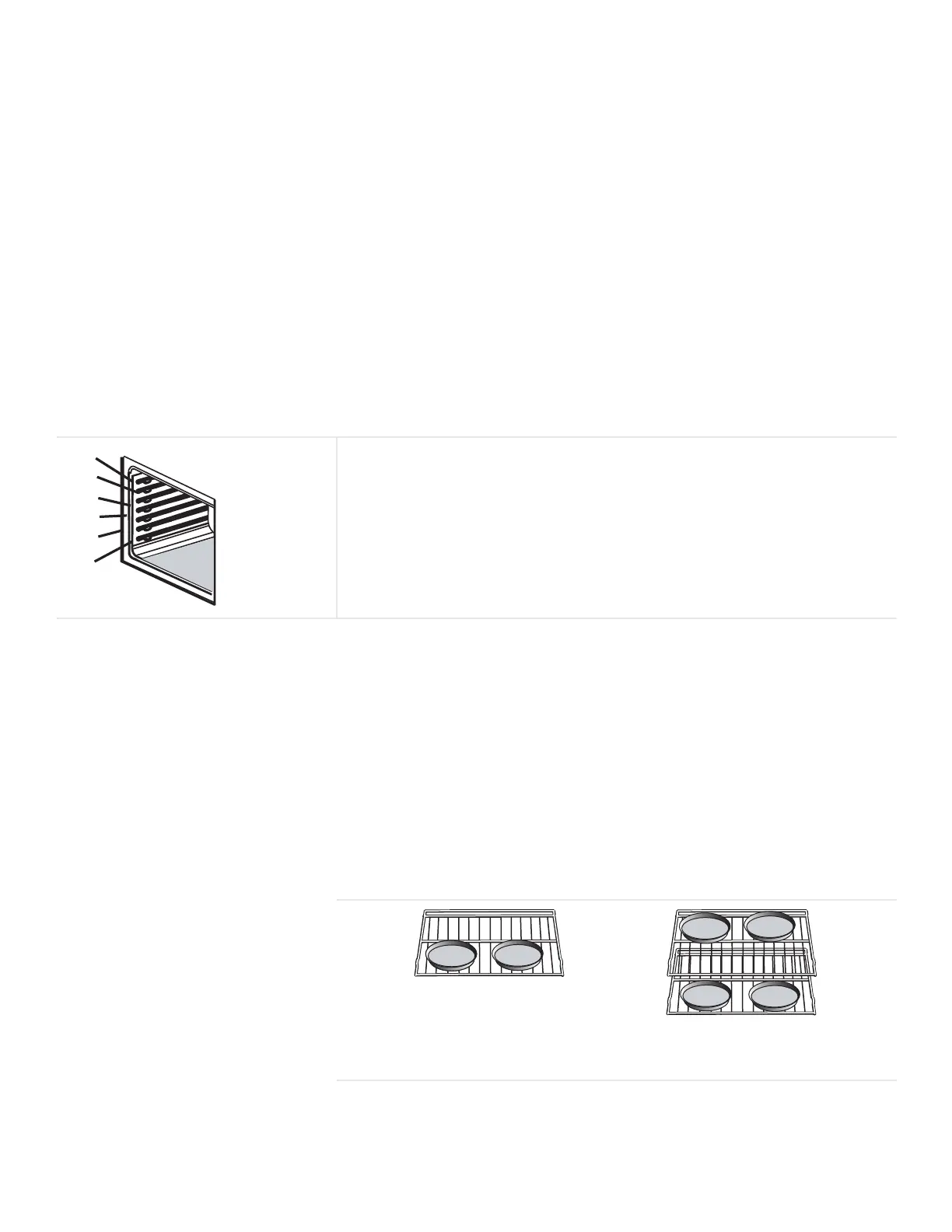 Multiple Rack Cooking When using multiple racks, follow the placement recommendations below.