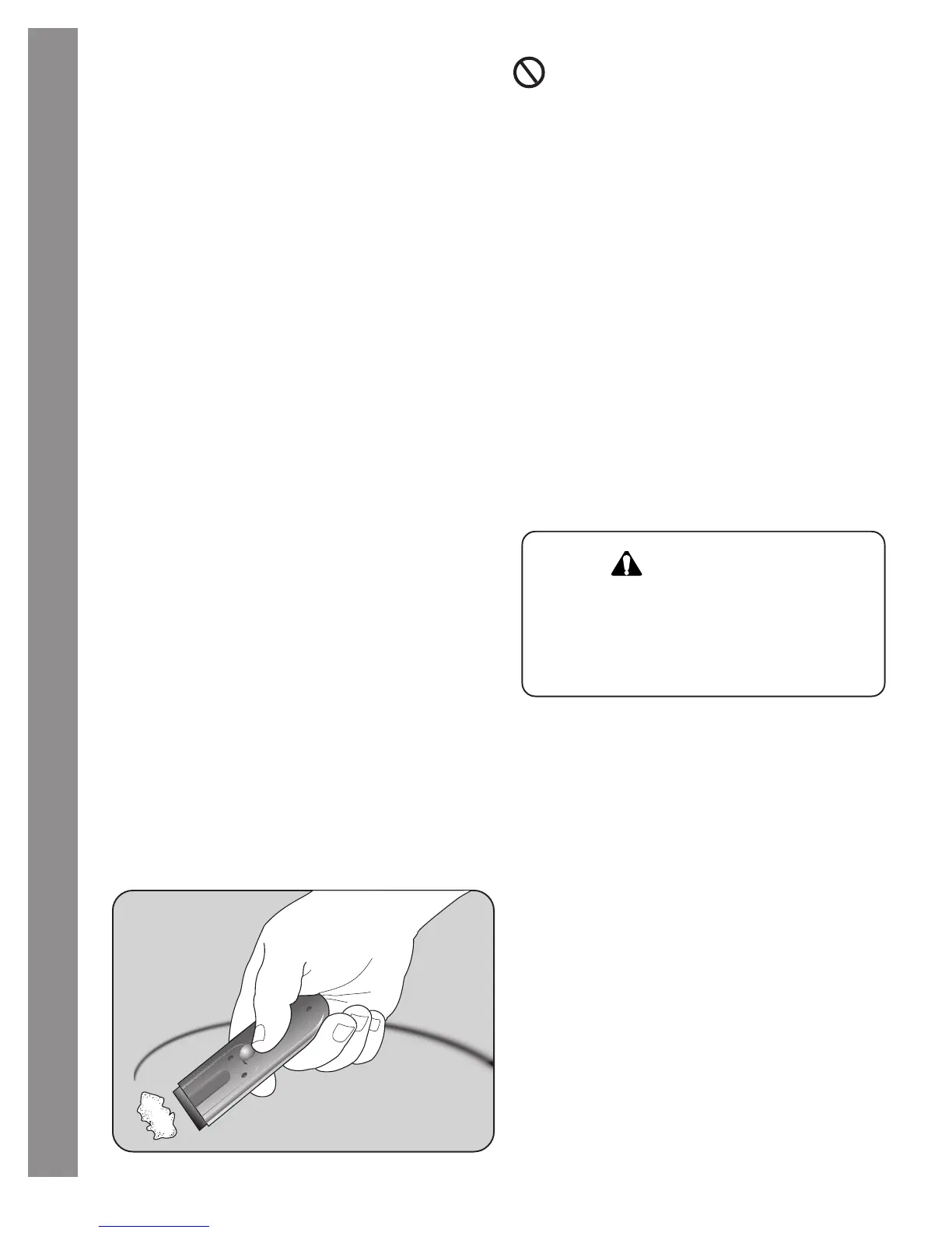 razor blade scraper (See Care and Cleaning Chart,