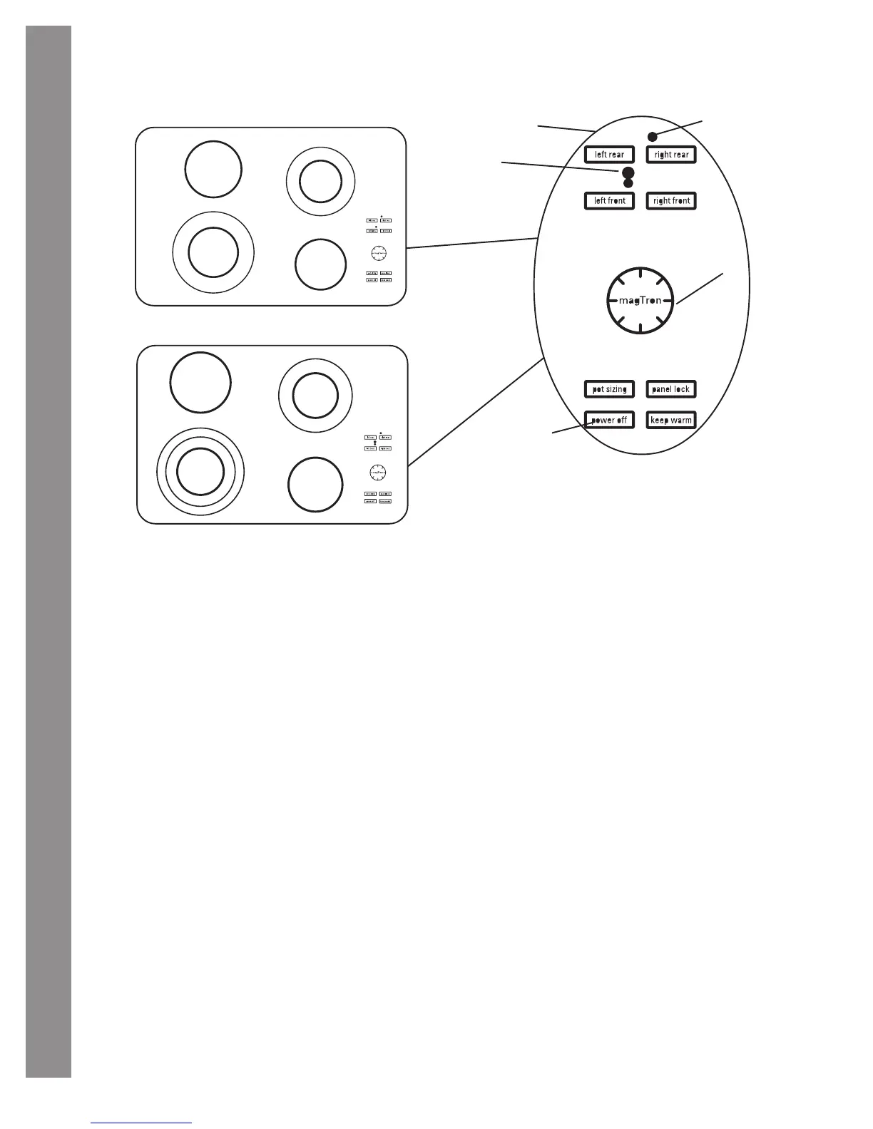 estufa Siemens HE25 tiene dos (2) elementos sencillos, un (1) elemento doble y un (1) elemento triple. La perilla magTrones