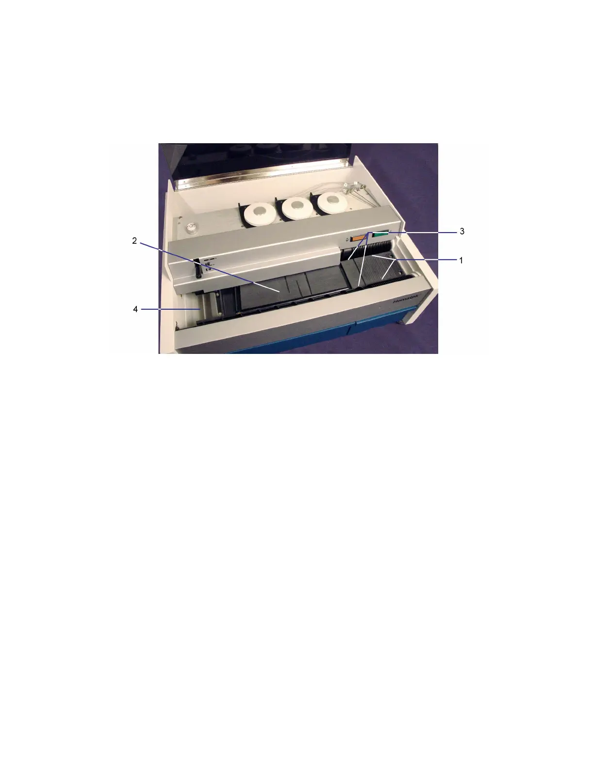 show the slide transport system, including the conveyor spirals, the platen, the platen