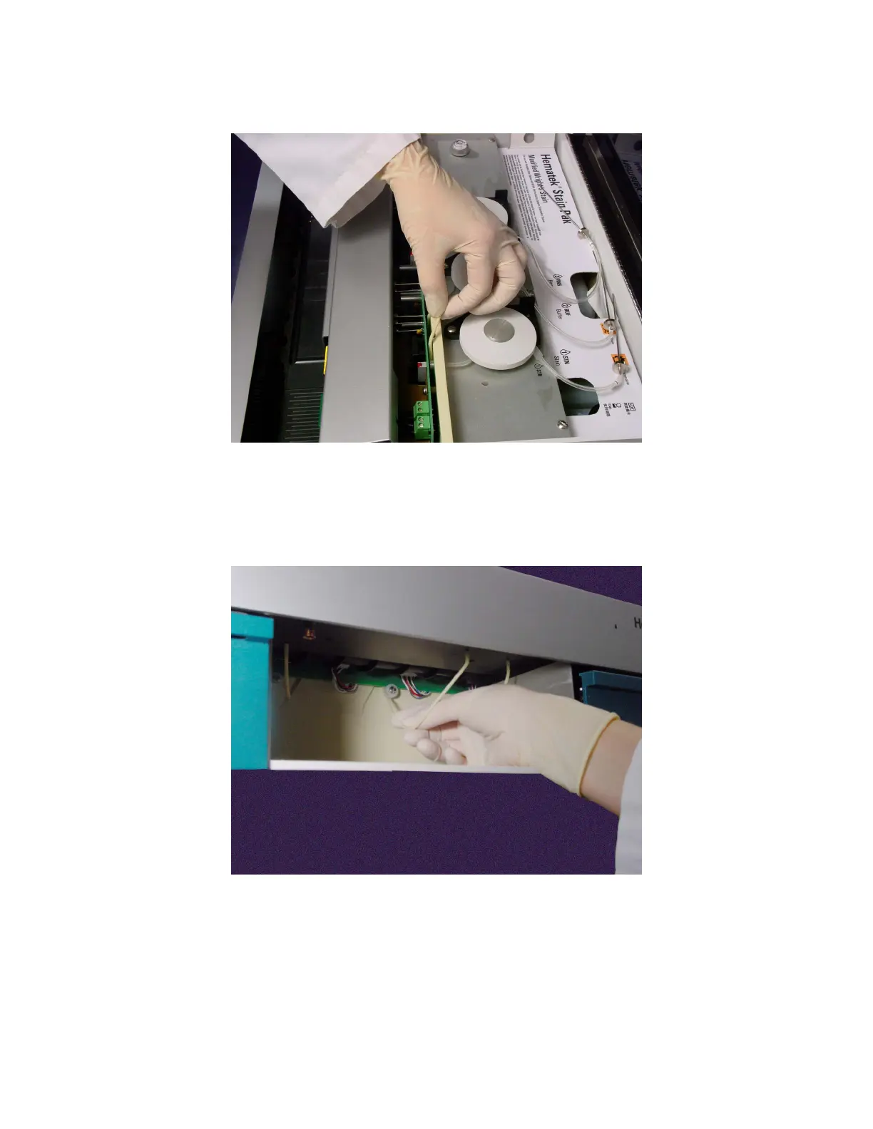10. Disconnect the stain tubing from the platen by pulling the tubing free from behind the